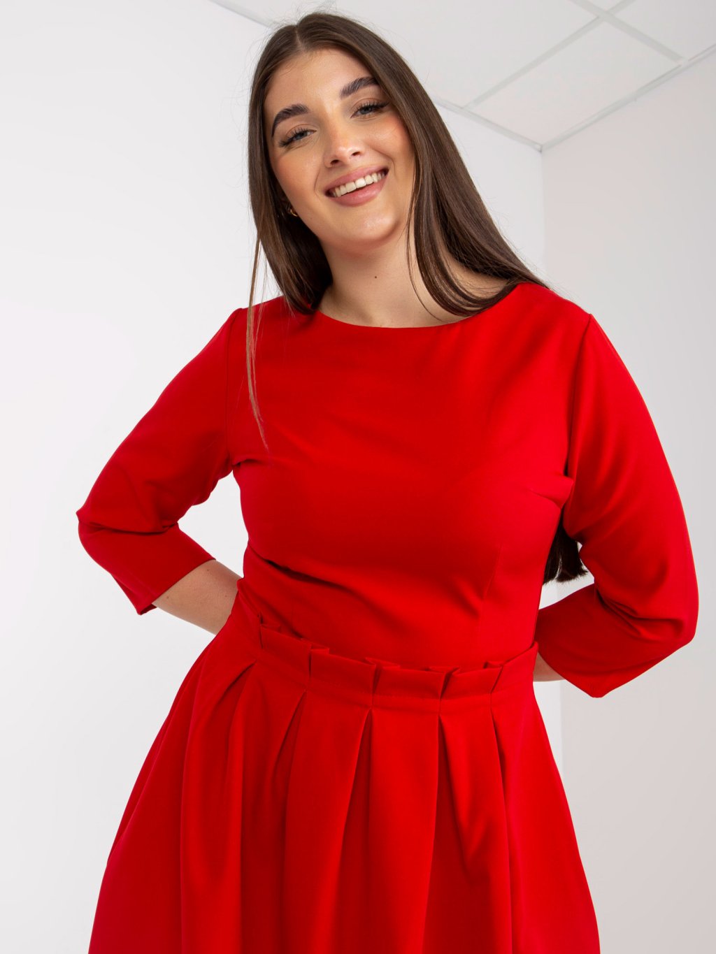 Modelka je oblečená do veľkosti 44.