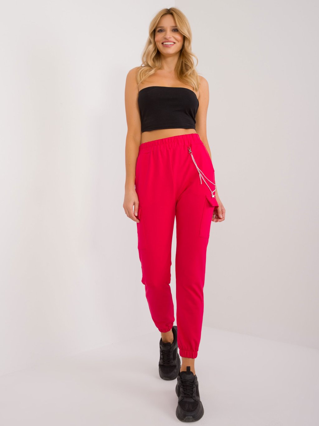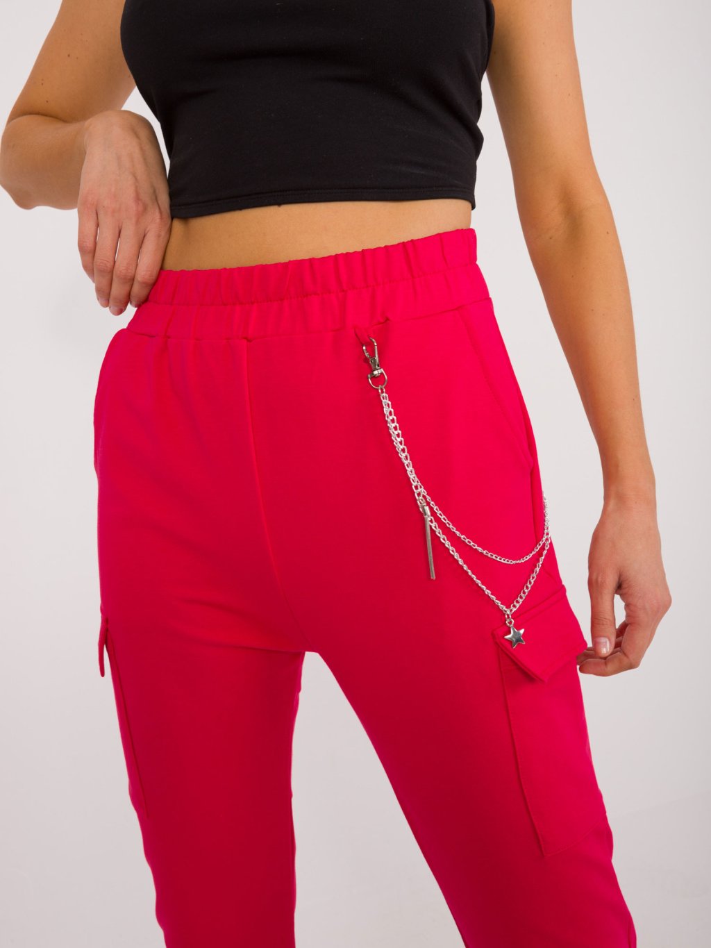 Červené tepláky s vreckami a ozdobnou retiazkou