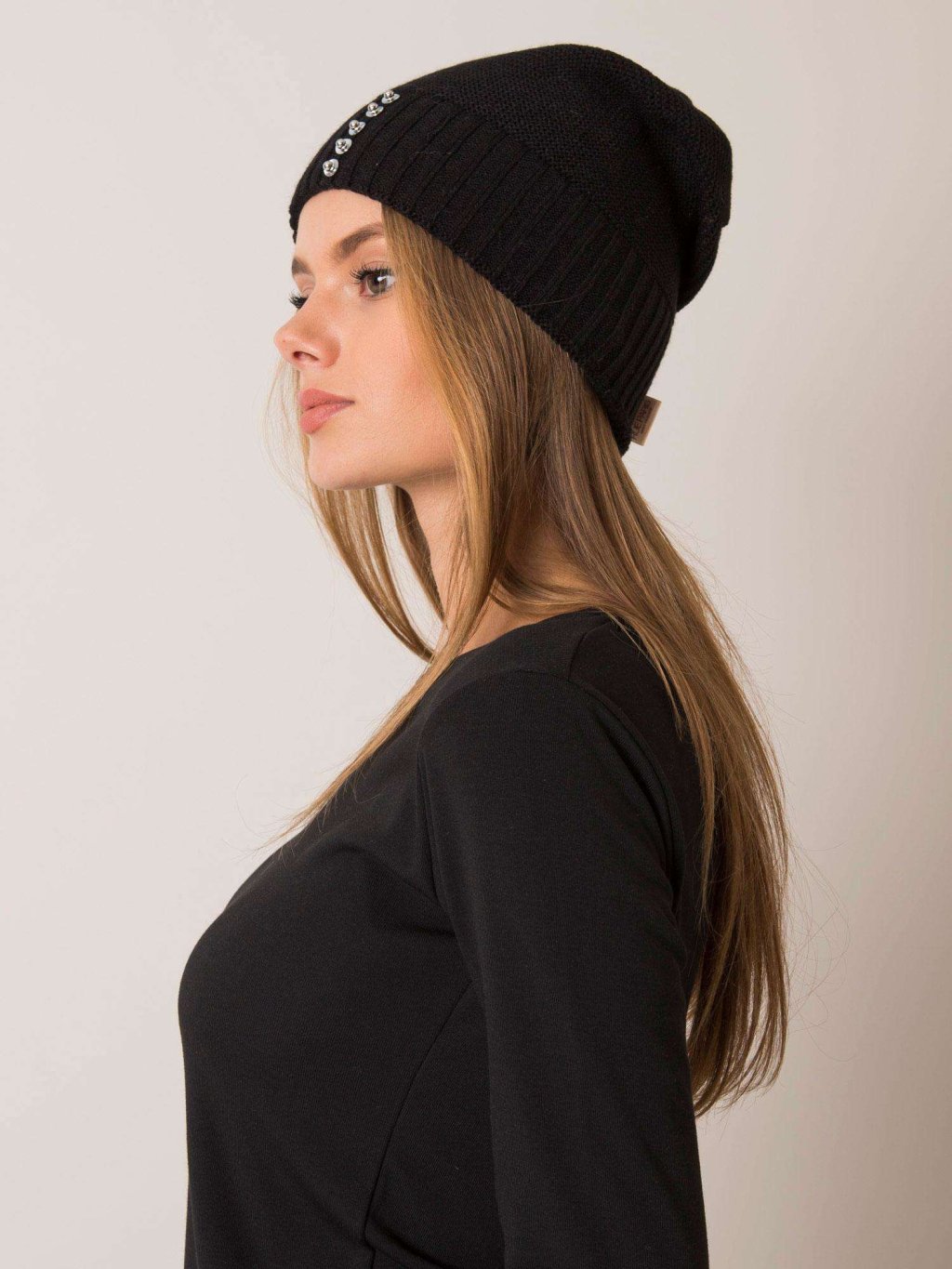 Čierna dámska čiapka so cvočkami
