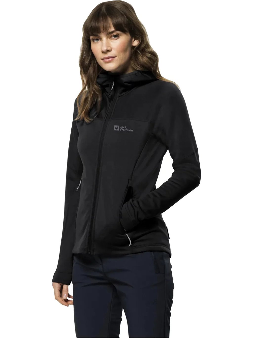čierna dámska funkčná mikina Jack Wolfskin Hirschberg Hooded FZ W