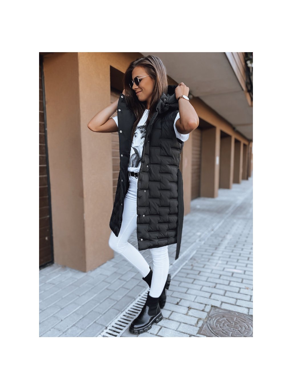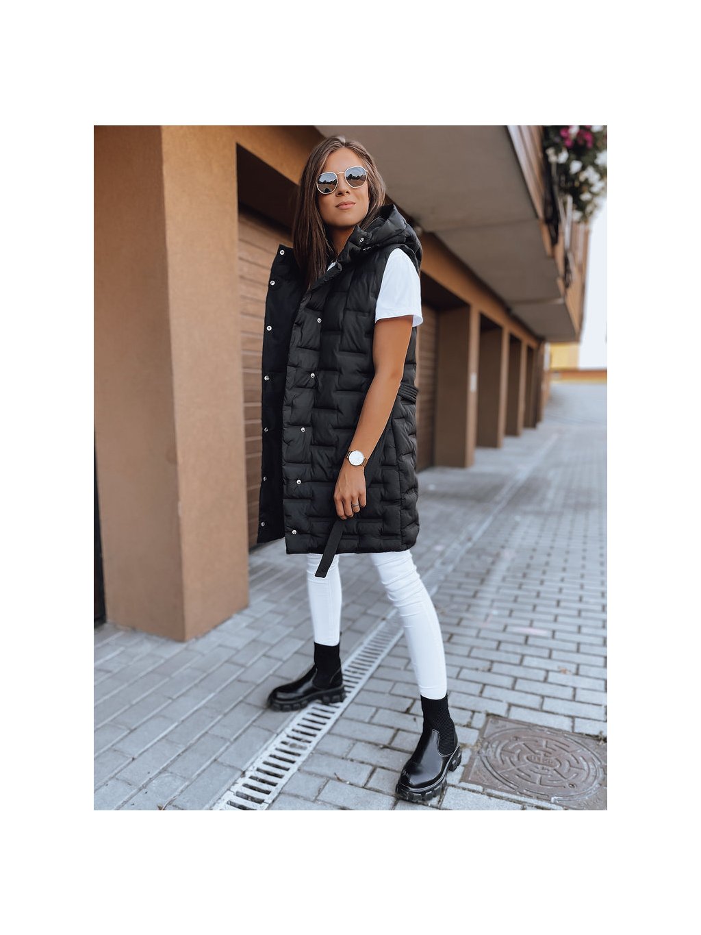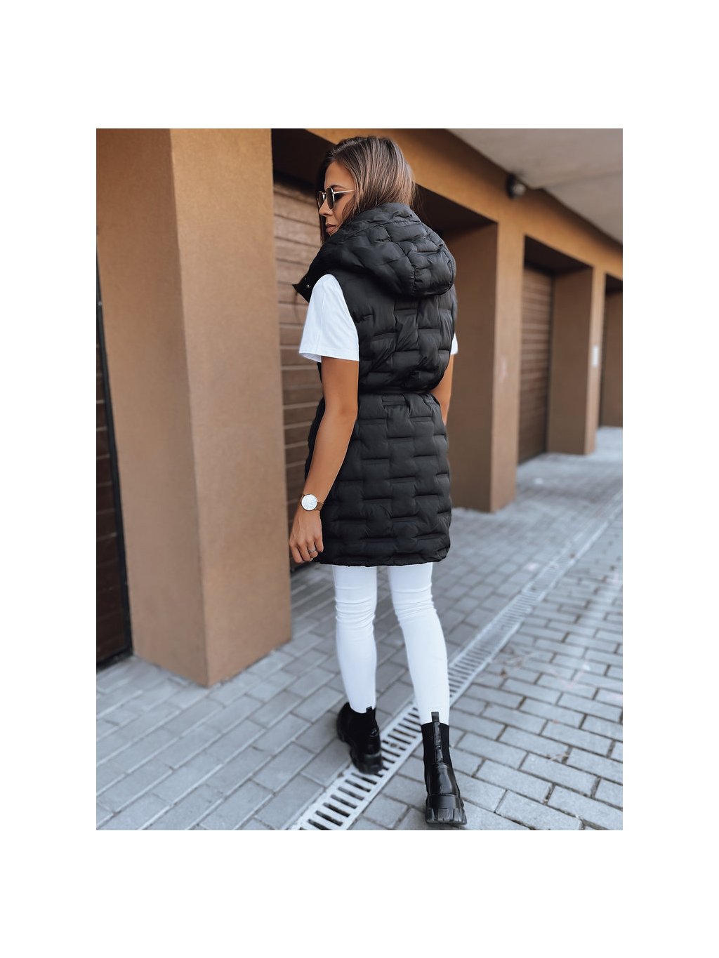 Čierna dámska prešívaná dlhšia vesta