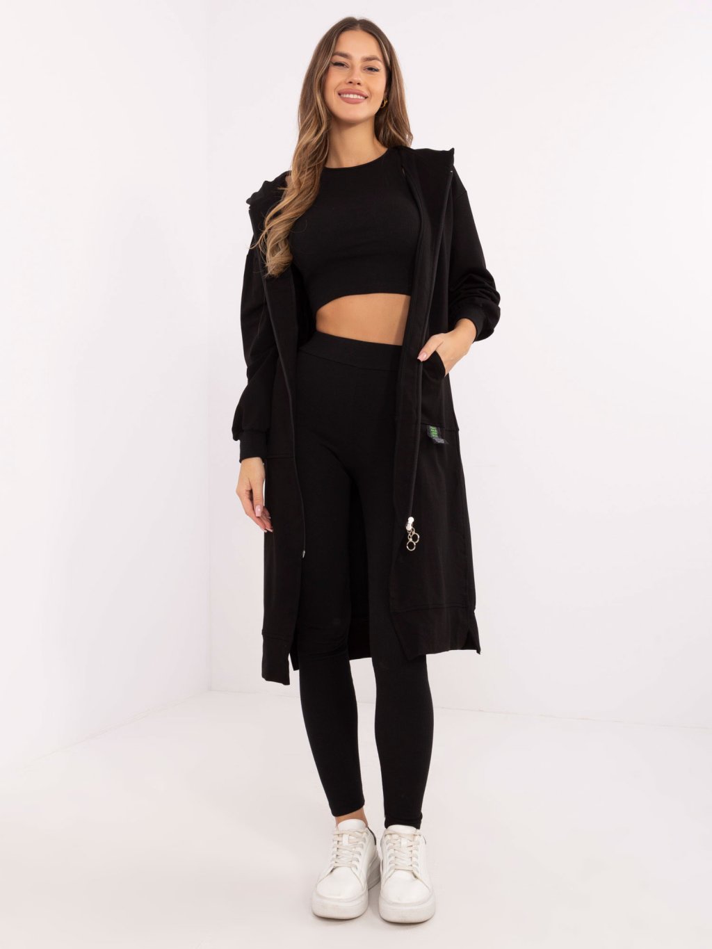 Materiálové zloženie mikiny: 72% bavlna, 22% polyester, 6% elastan; materiálové zloženie legín a zvršku: 90% bavlna, 10% elastan.