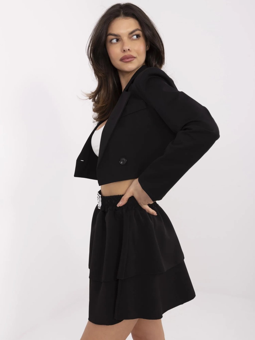 Čierna dámska volánová mini sukňa s elastickým pásom