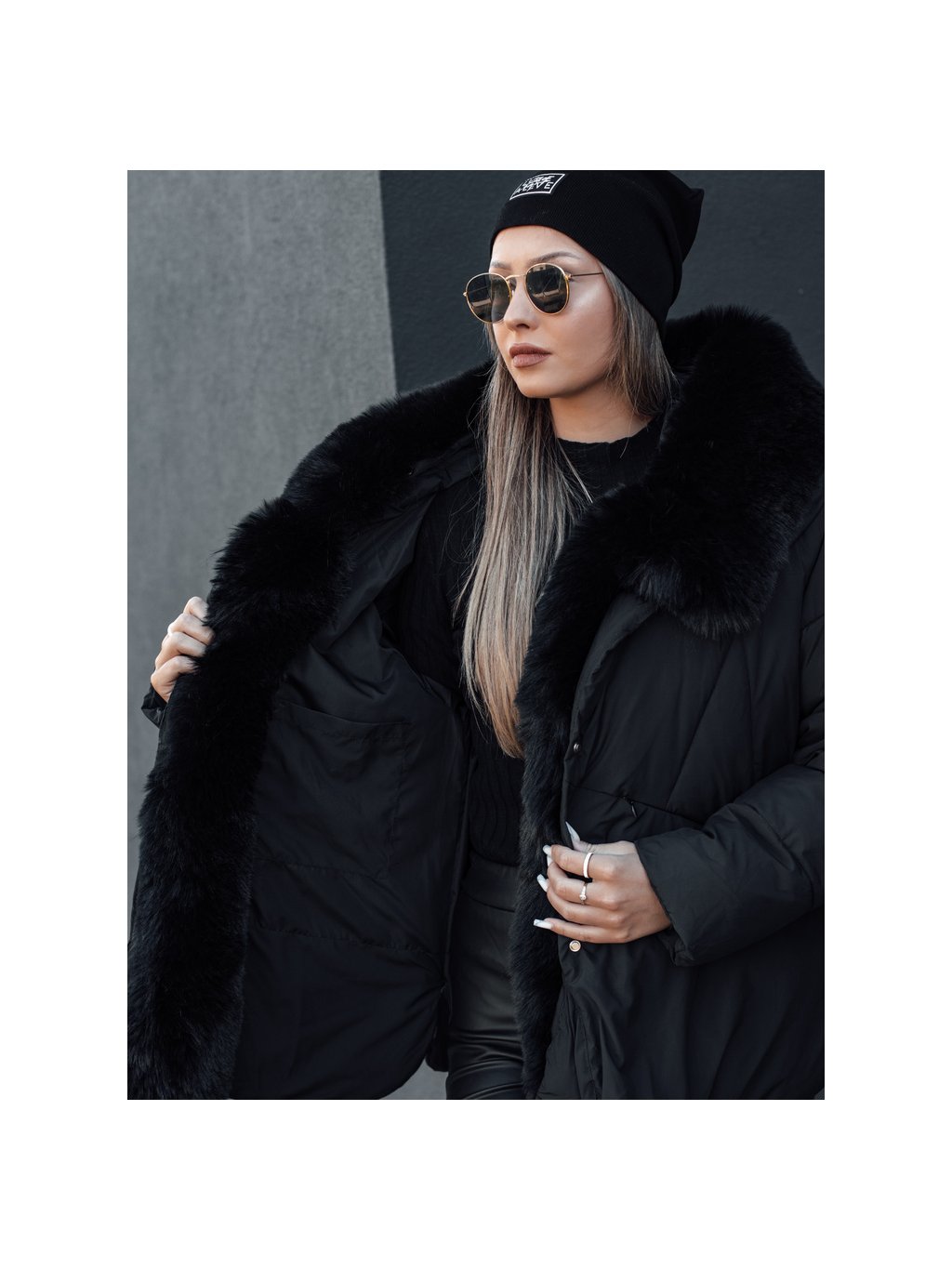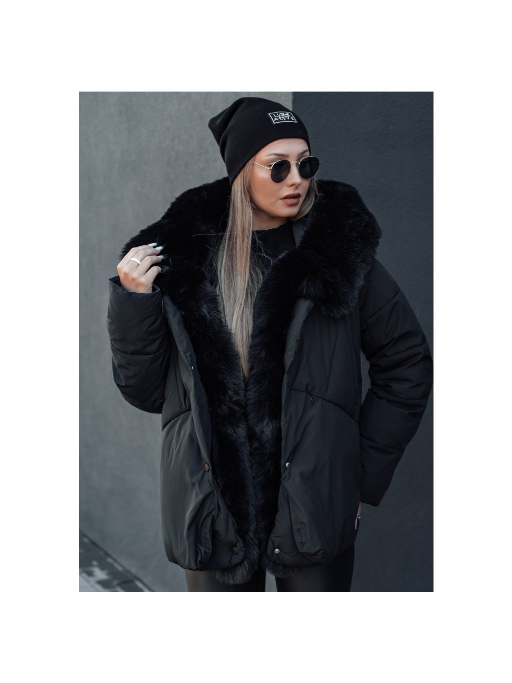 Čierna dámska zimná bunda s kožúškom LUNAVI