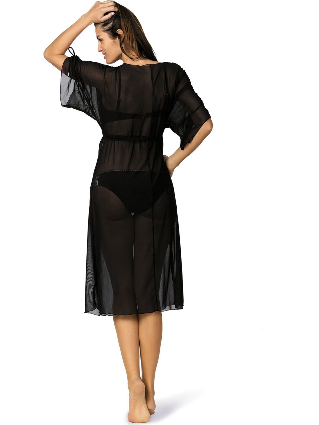 Čierna dlhá plážová tunika na plavky so stiahnutím Dora Nero