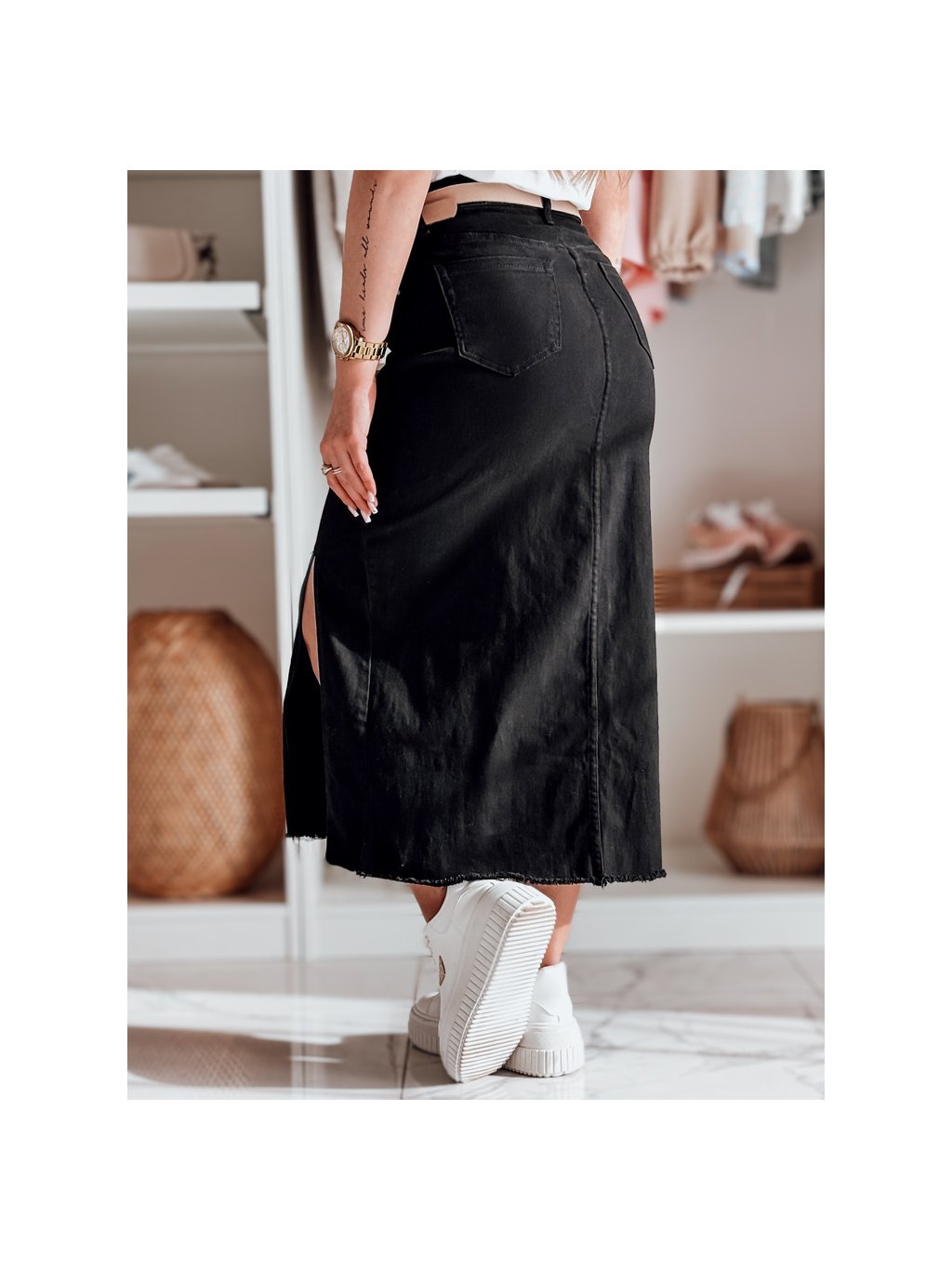 Čierna džínsová midi sukňa s rozparkom MIDILEXU