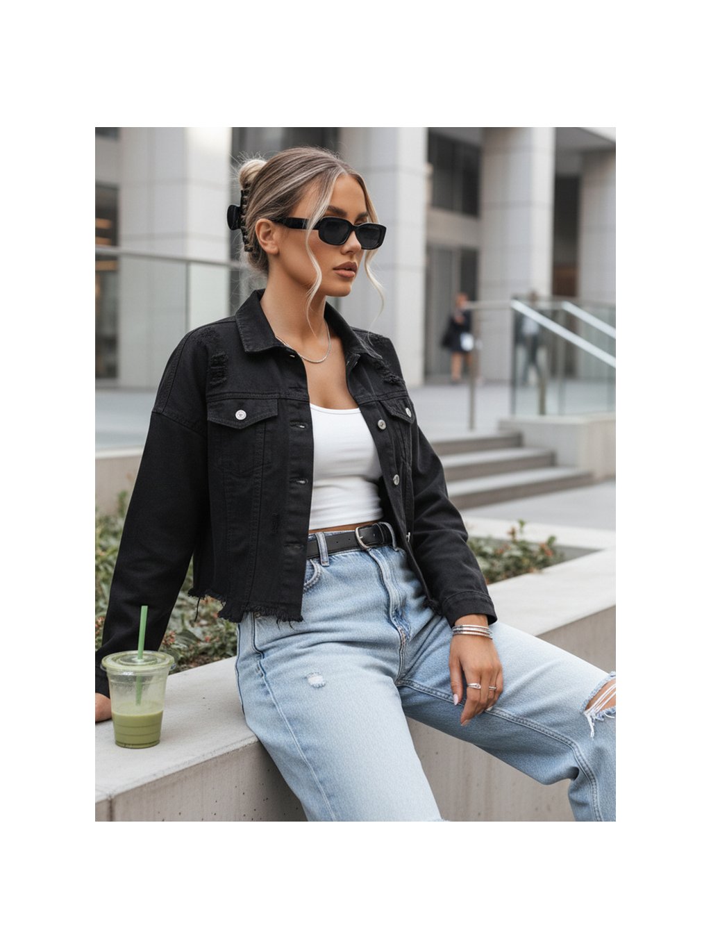 Čierna džínsová oversize bunda MOLI