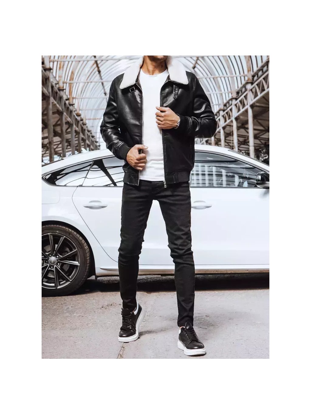 Čierna koženková bunda s golierom