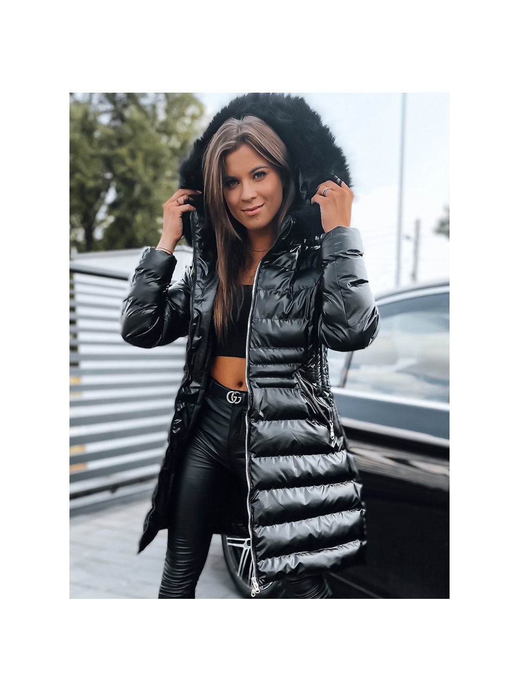 Čierna lesklá prešívaná bunda PHILA