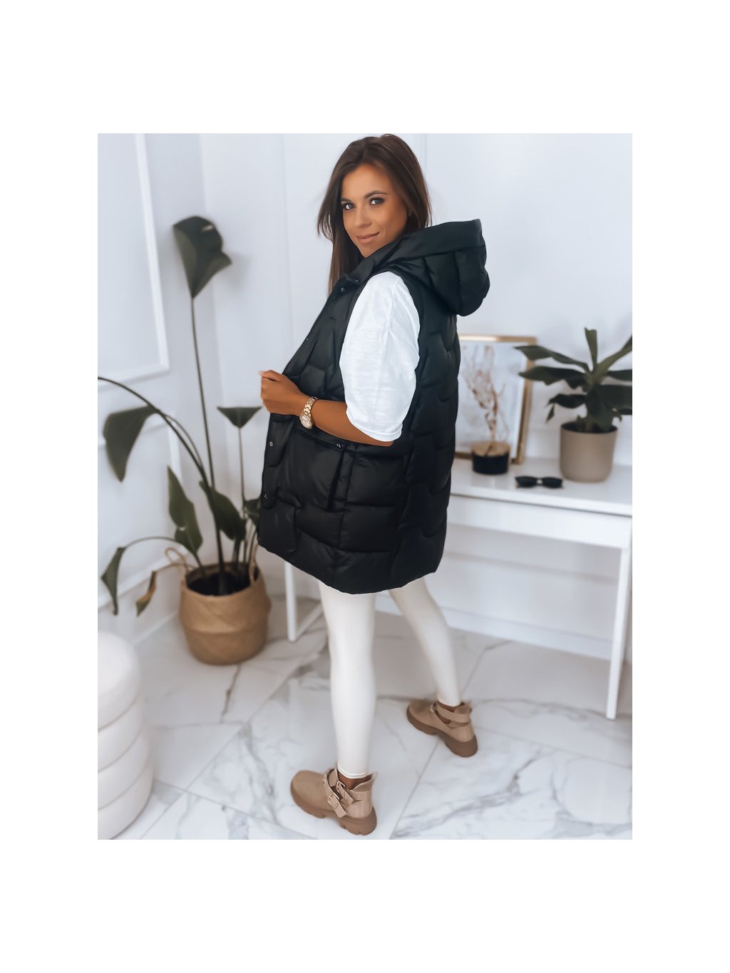 Dámska vesta s kapucňou.