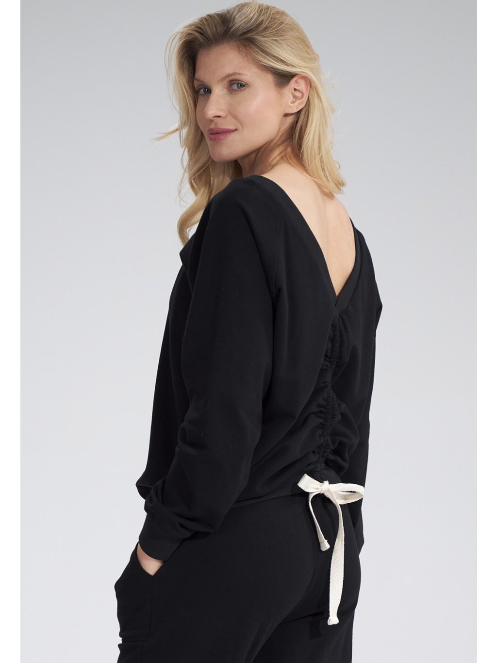 Čierna mikina na chrbte na sťahovanie