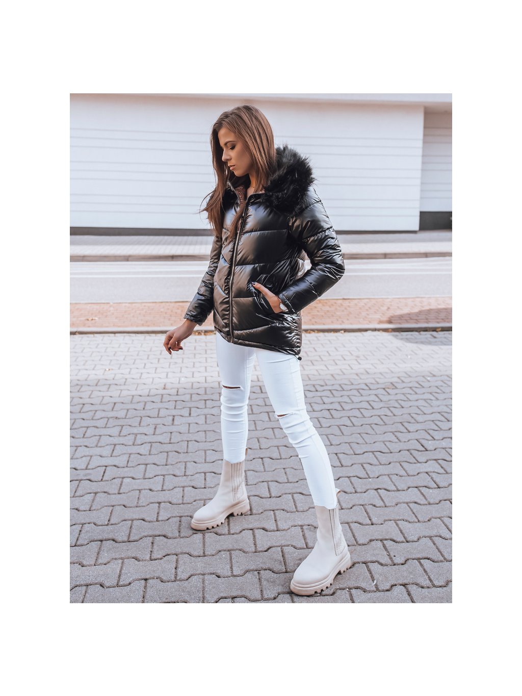 Čierna obojstranná dámska lesklá prešívaná bunda
