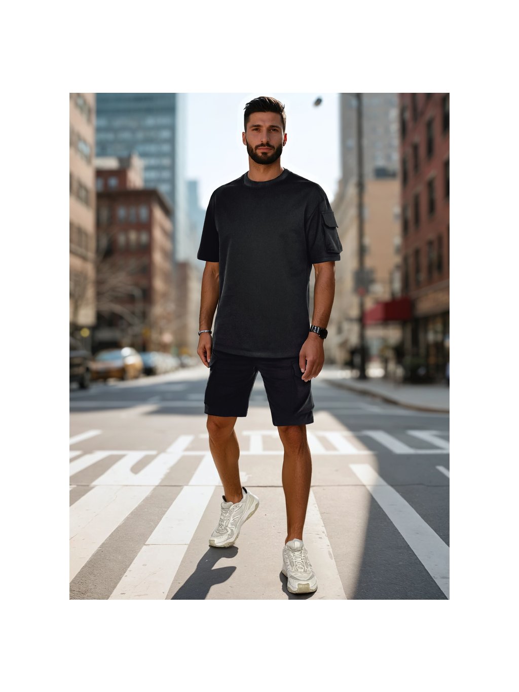Čierna pánska krátka tepláková súprava s vreckom na rukáve