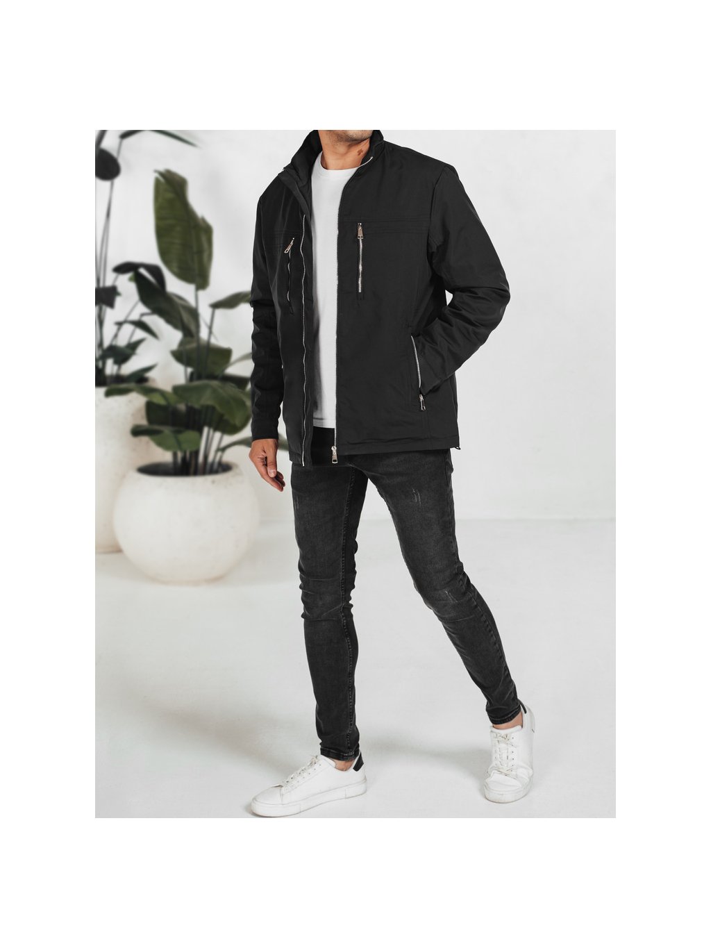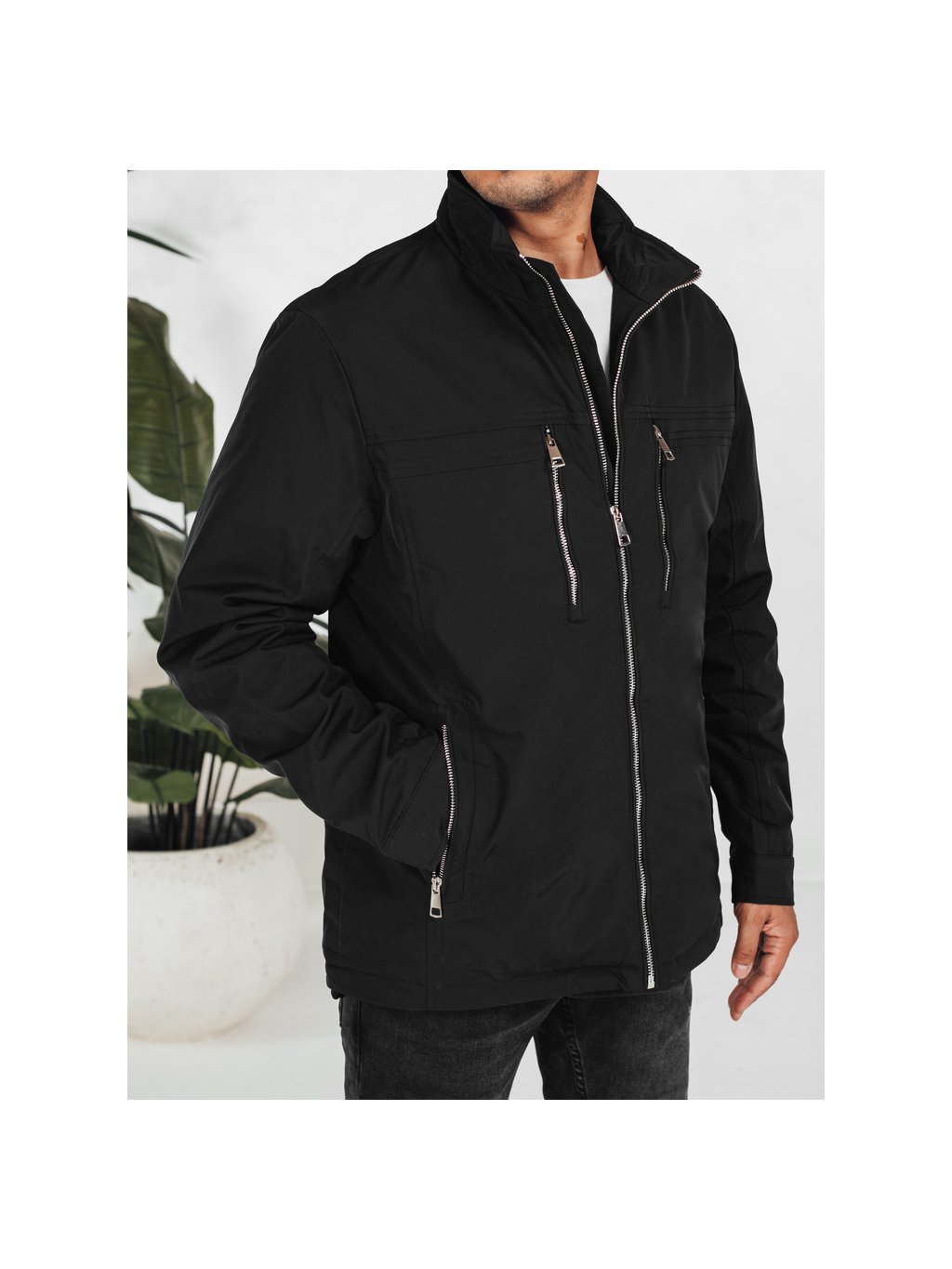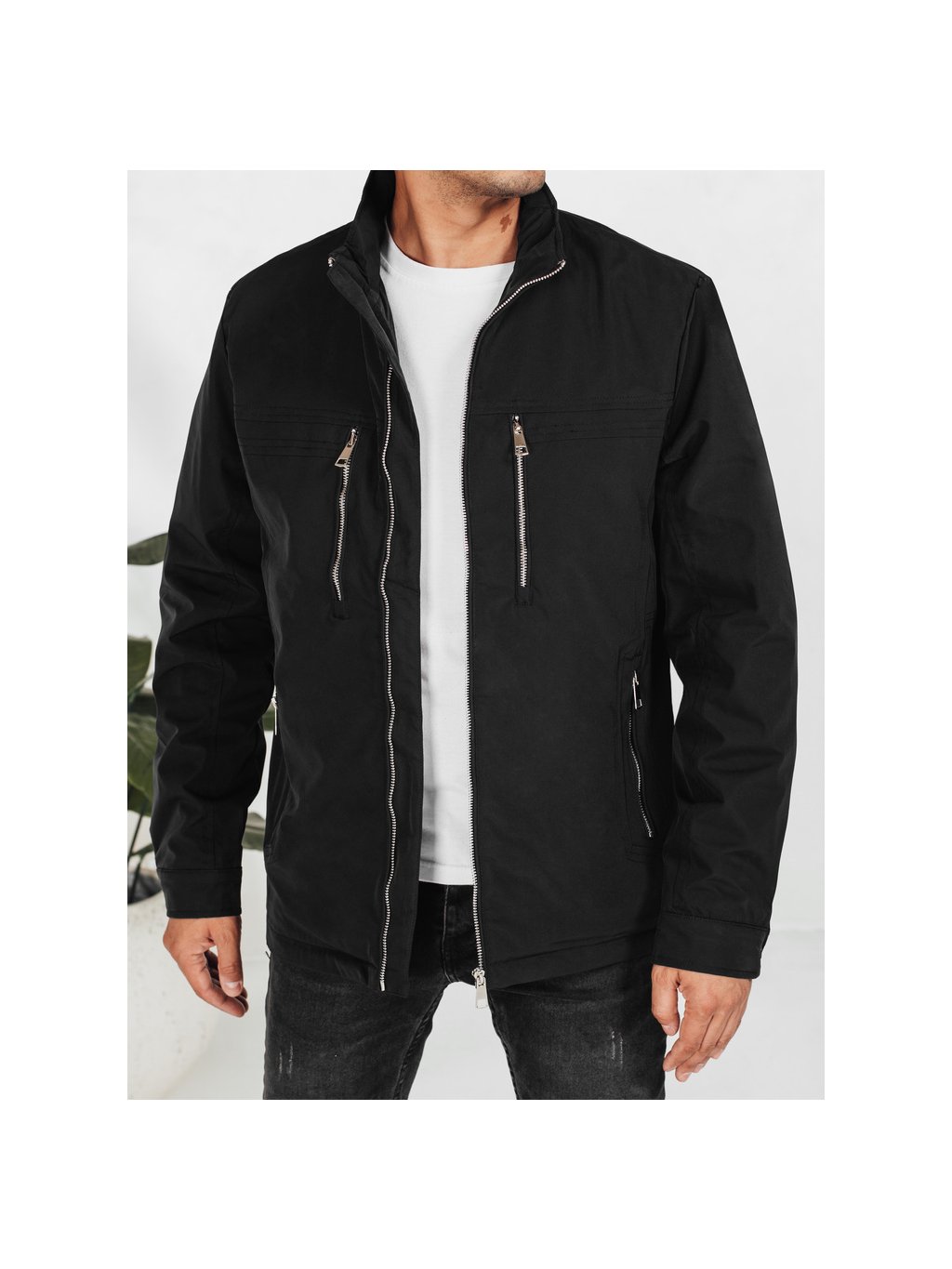 Čierna pánska prechodná bunda bez kapucne