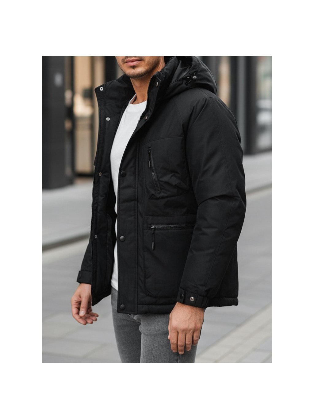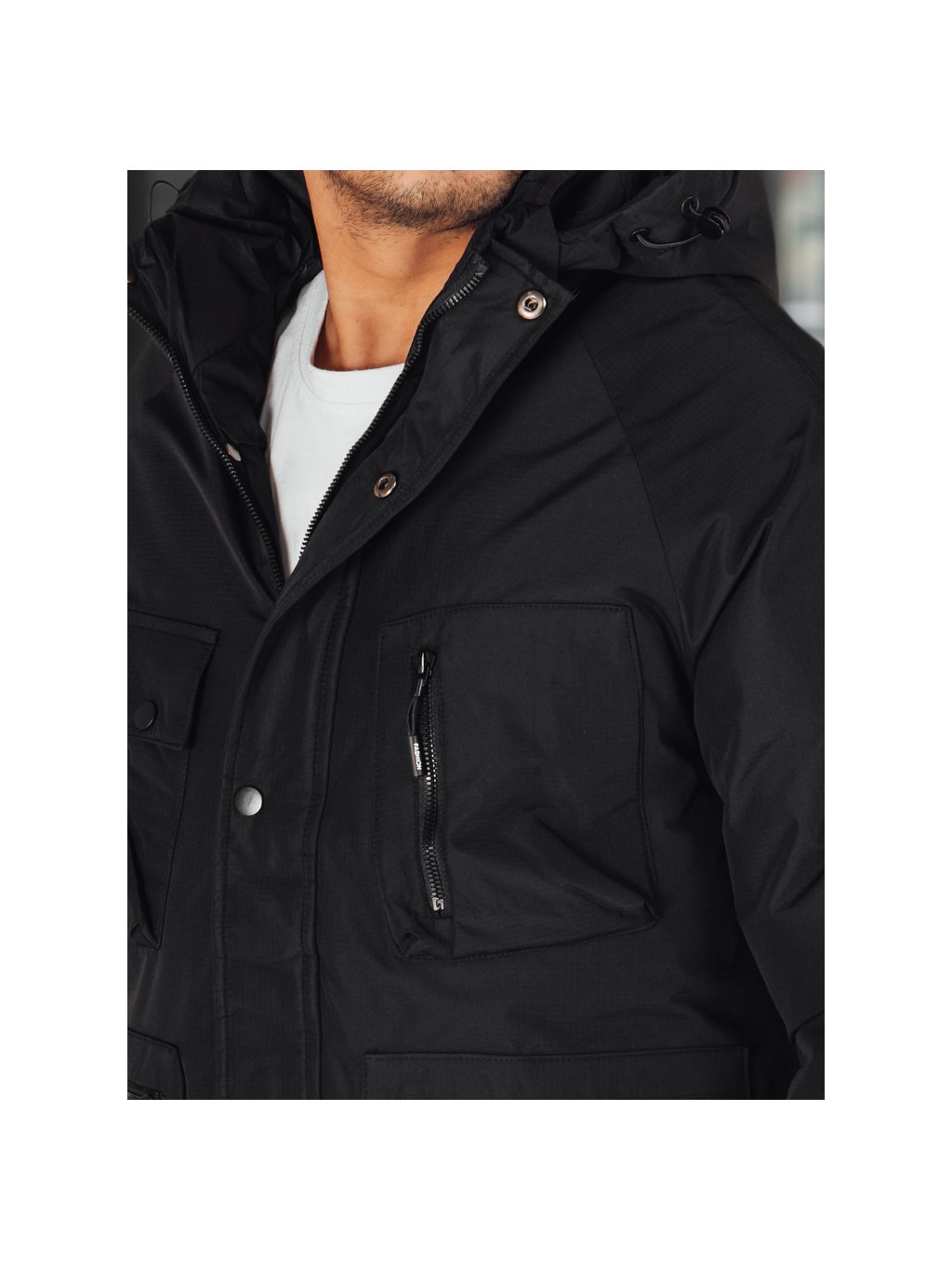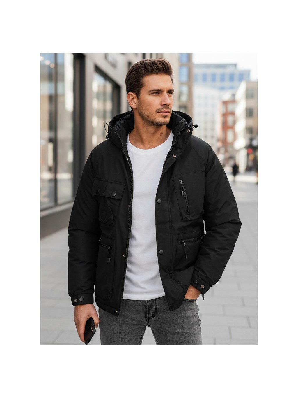 Čierna pánska zimná bunda s kapucňou