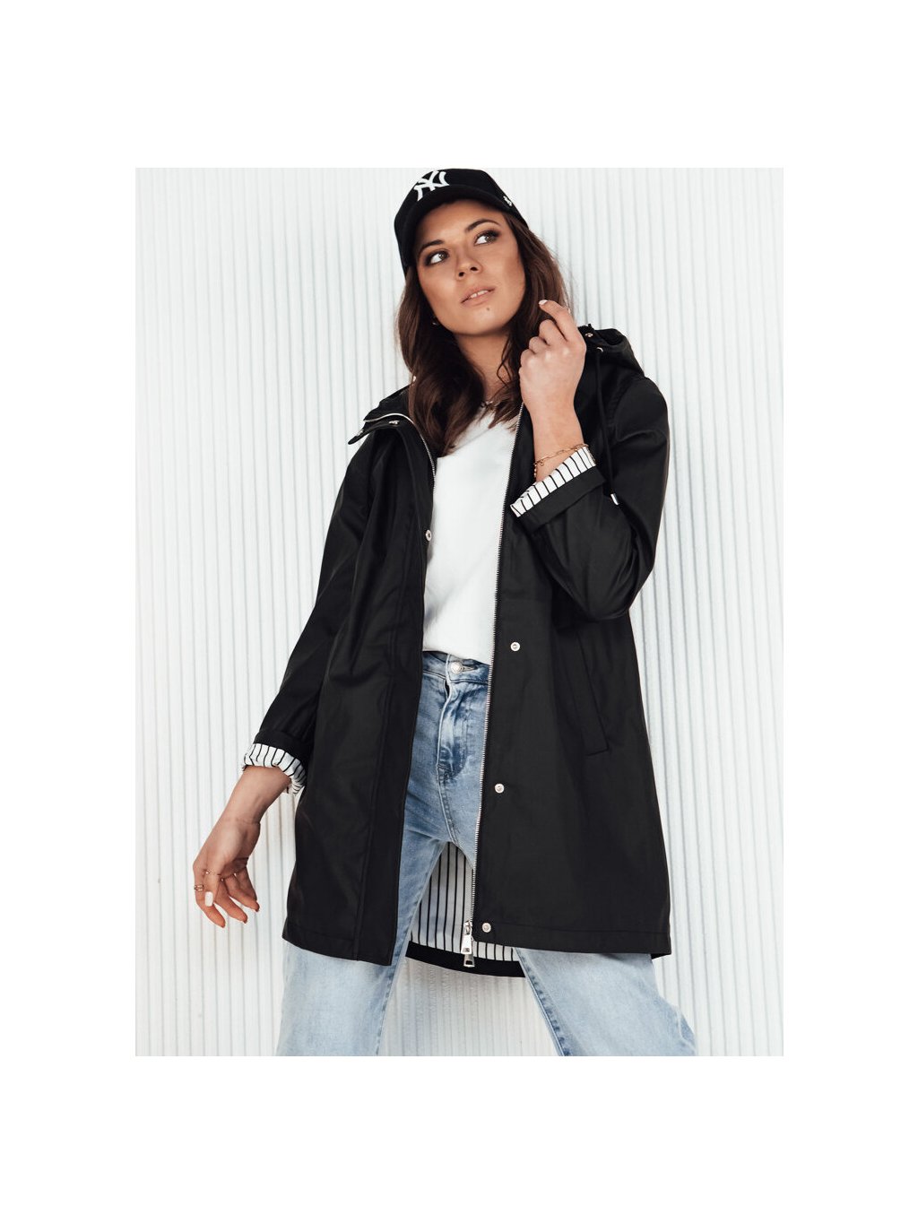 Čierna prechodná bunda dlhšieho strihu KELION
