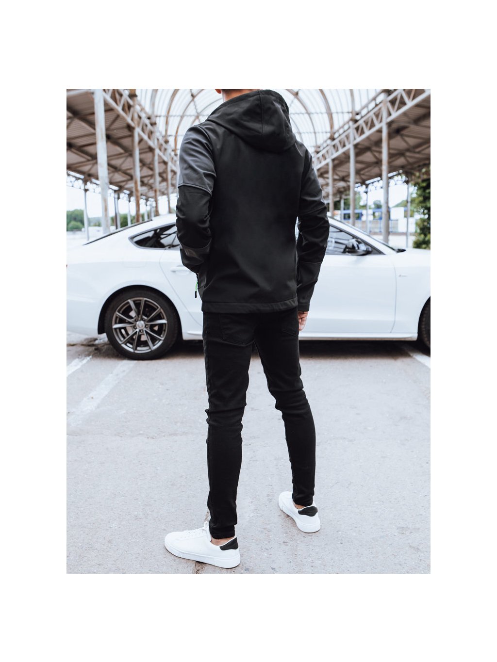 Čierna softshell bunda s kapucňou