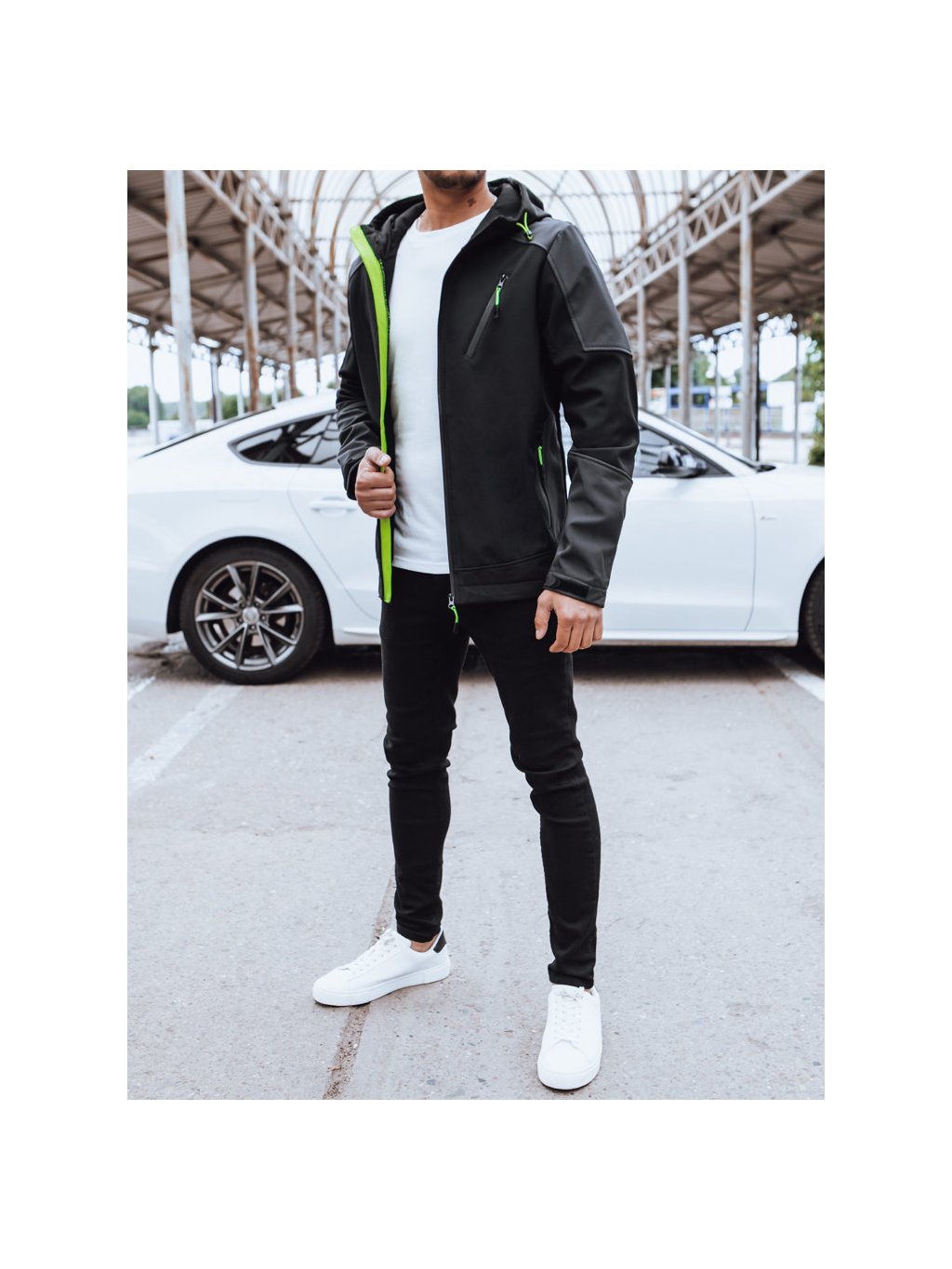 Pánska softshellová bunda s kapucňou.