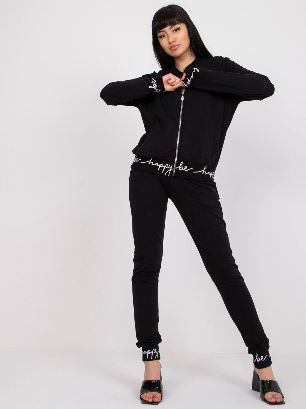Čierna súprava s nápismi "Be Happy" na lemoch