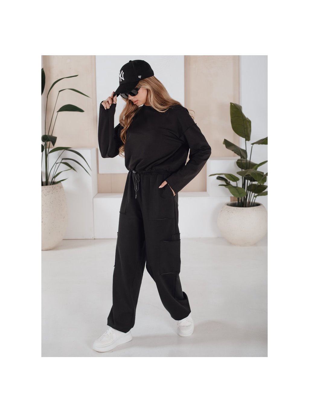 Čierna tepláková súprava s crop mikinou CHARM