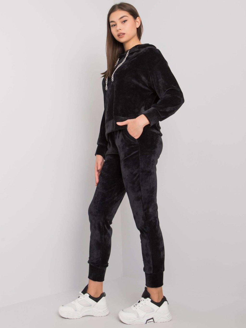 Čierna velúrová súprava s kapucňou