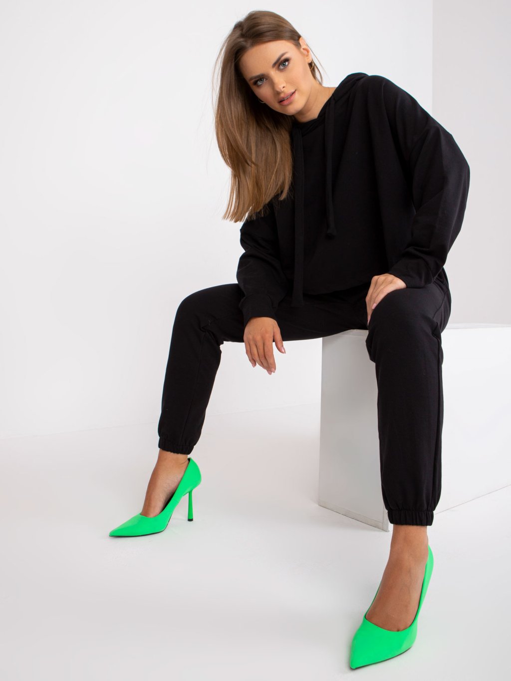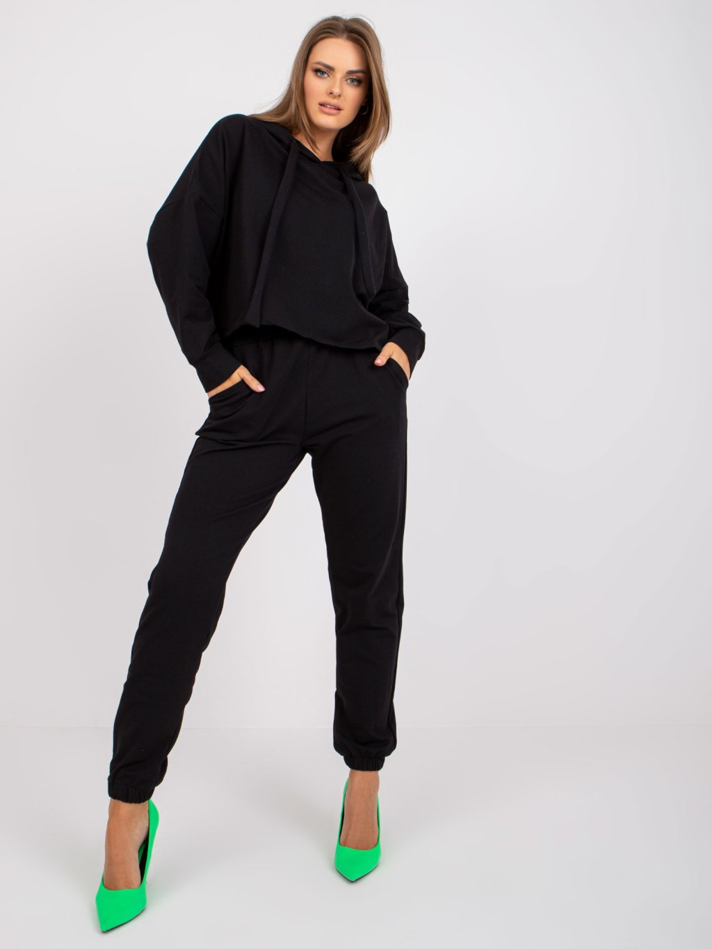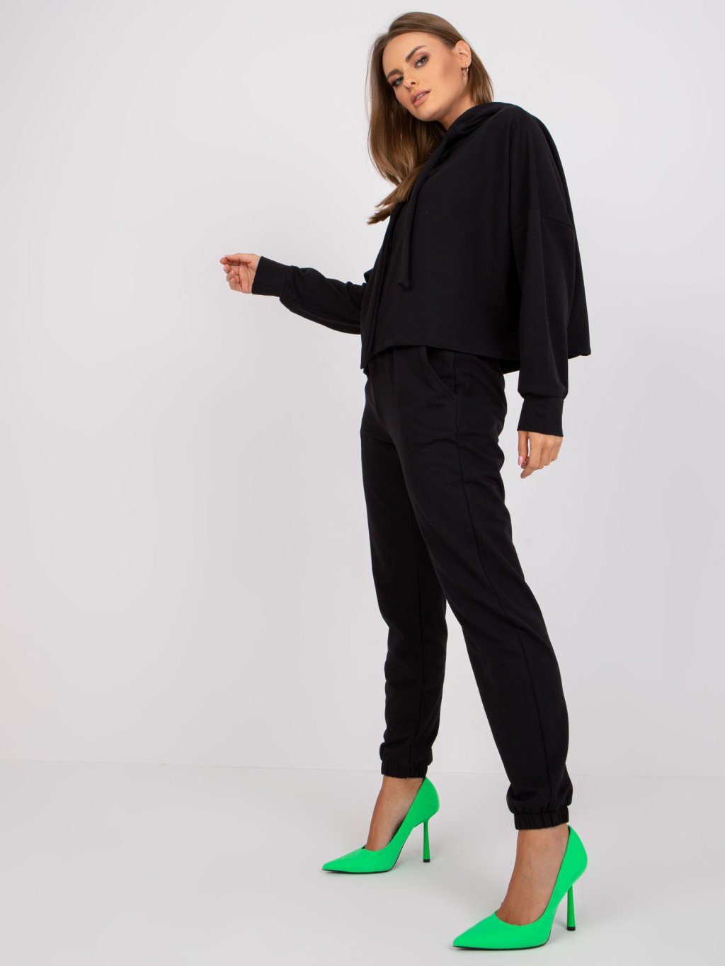 Čierna voľná basic teplákovka s kapucňou