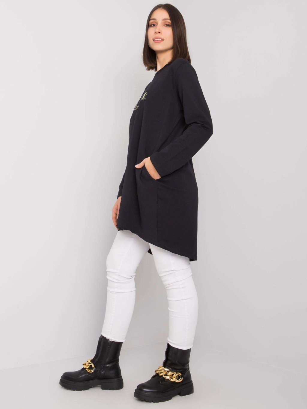 Čierna voľná tunika Alexiah s nápisom "Shine Glamour"