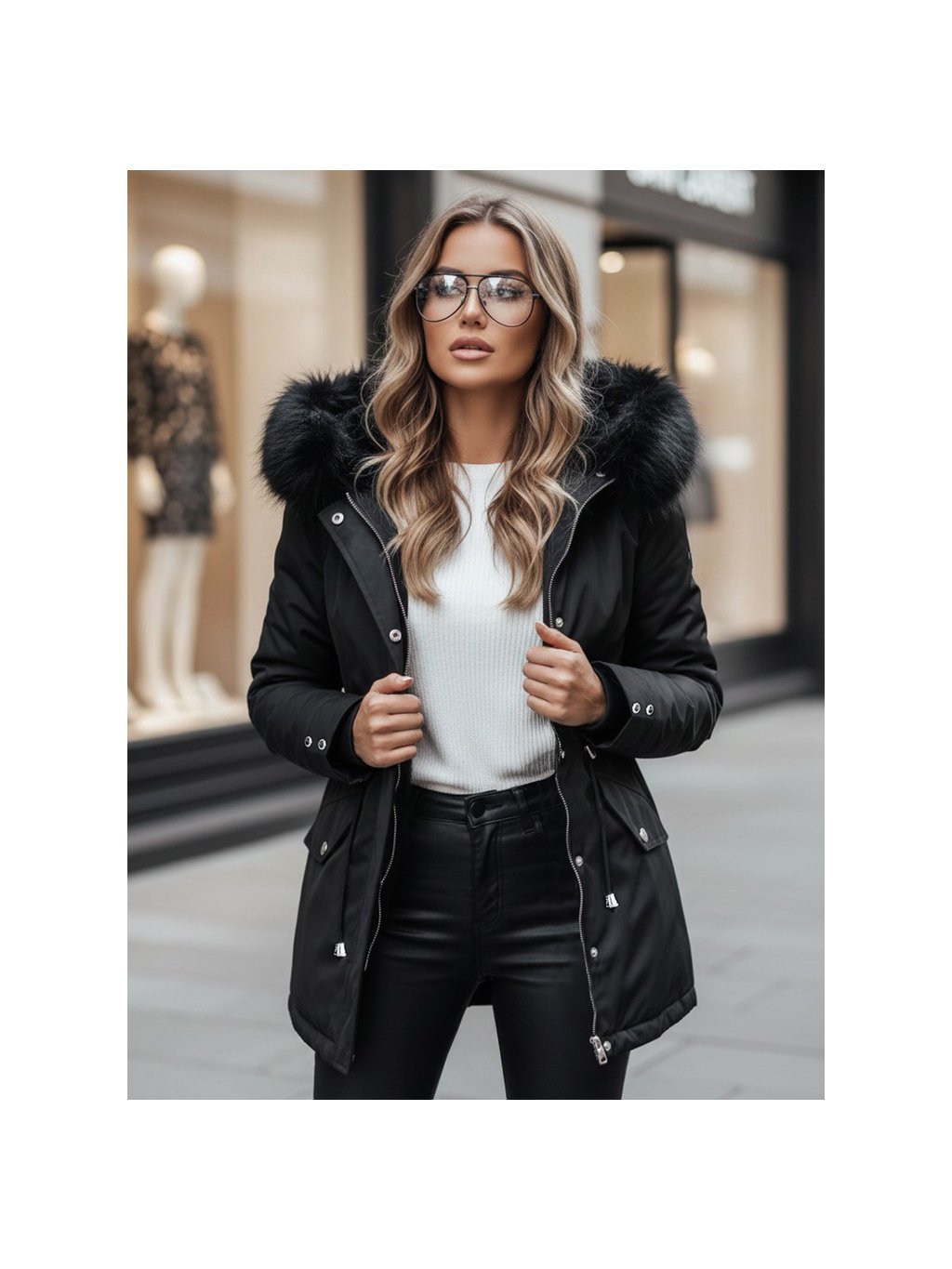 - Neodnímateľná kapucňa s odnímateľnou kožušinou