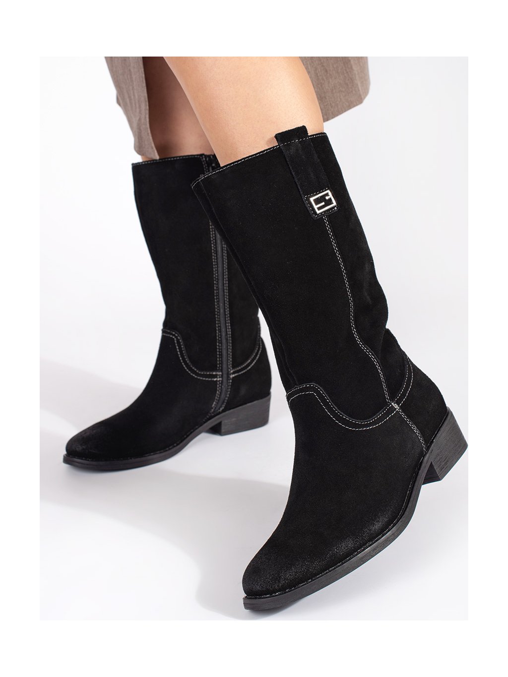 Čierne dámske kožené čižmy typu kovbojky na podpätku Sergio Leone, podpätok 3,5 cm