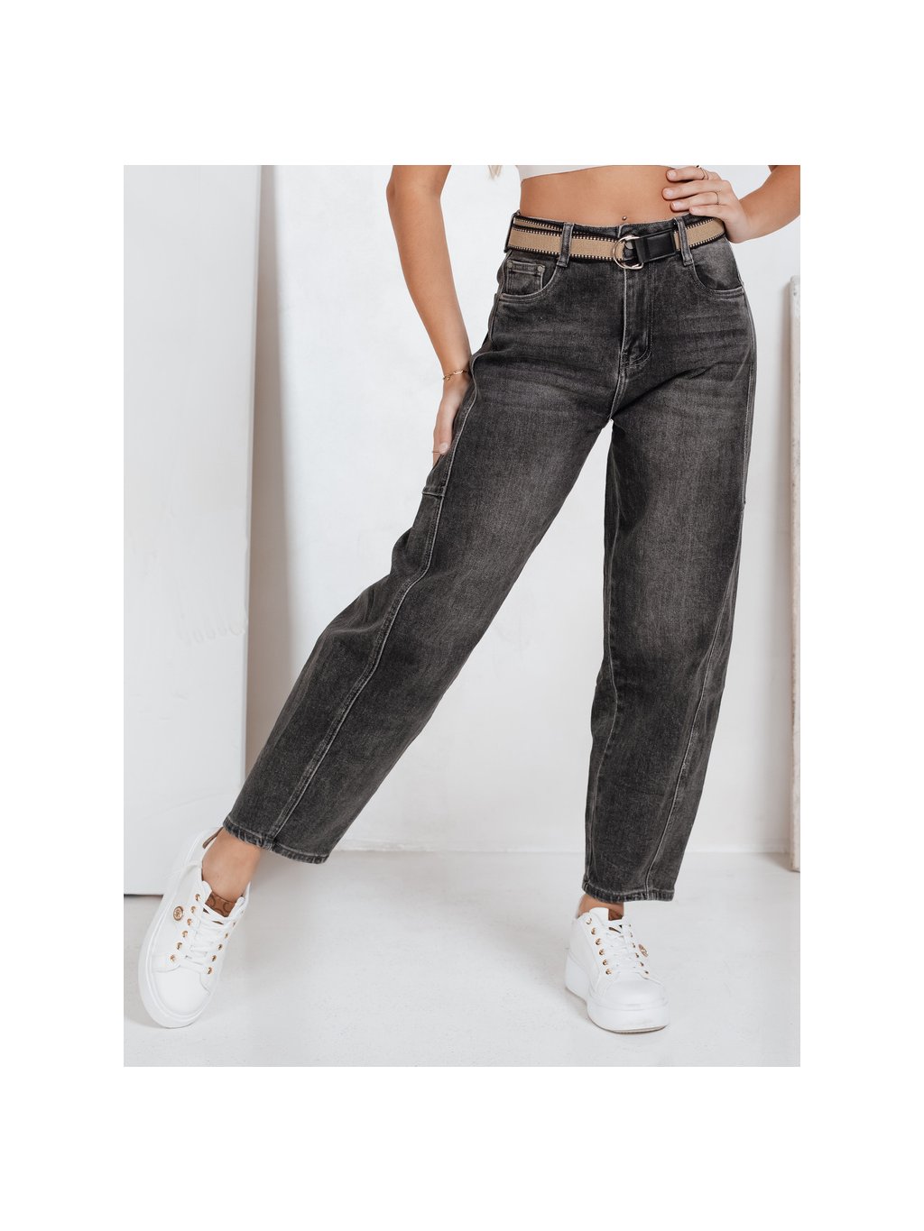 Čierne dámske široké džínsy s opaskom