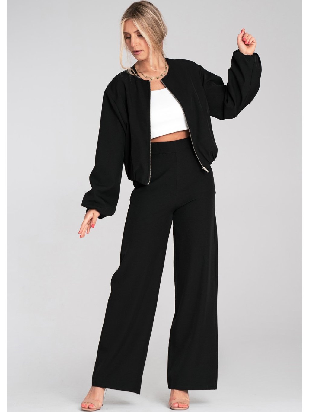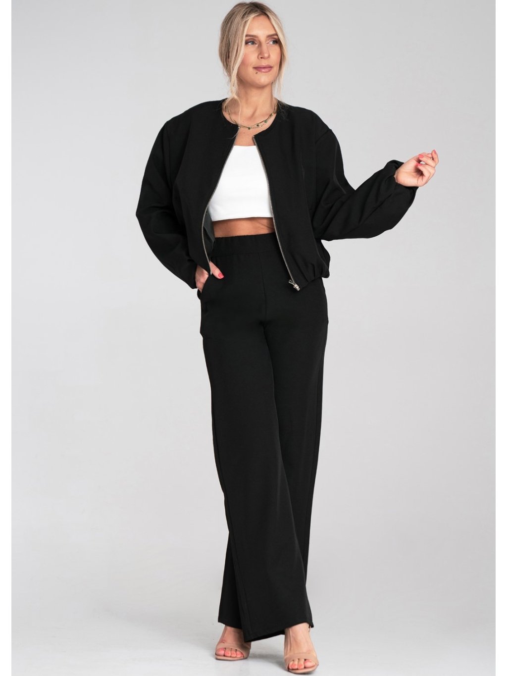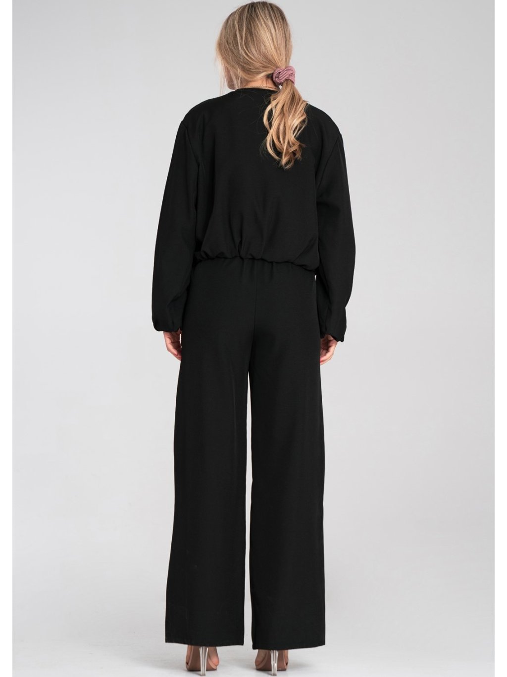 Čierne dámske široké nohavice s elastickým pásom