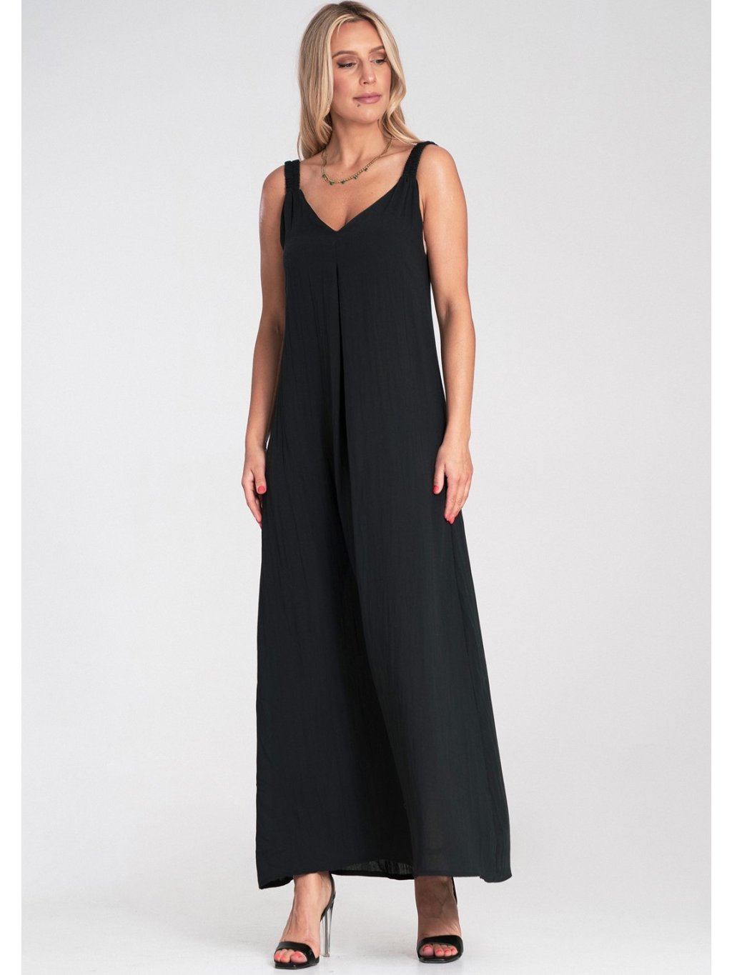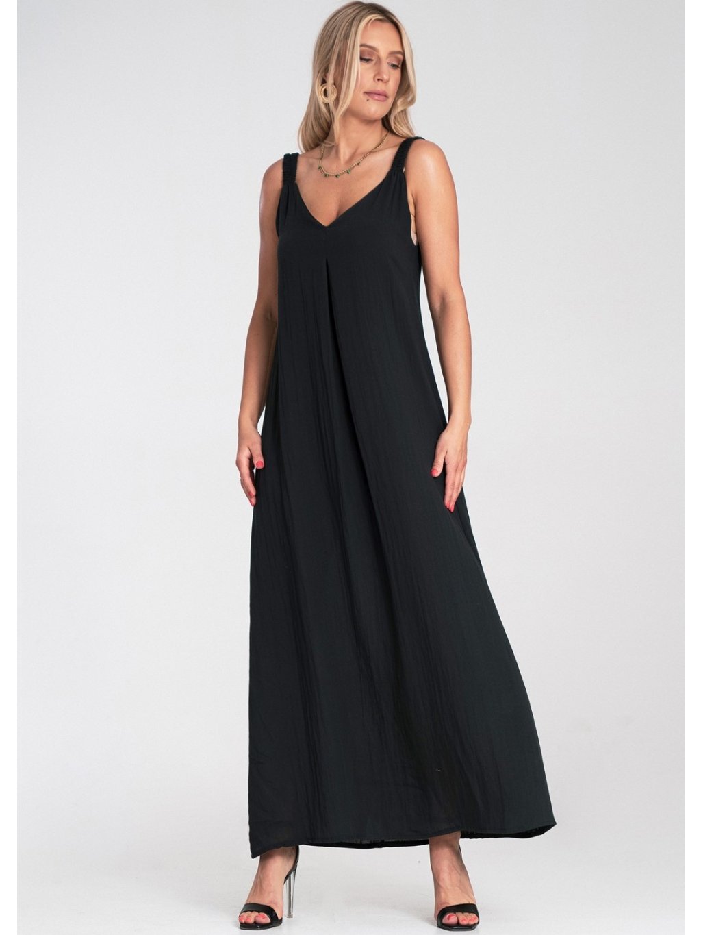 Čierne dámske viskózové maxi šaty