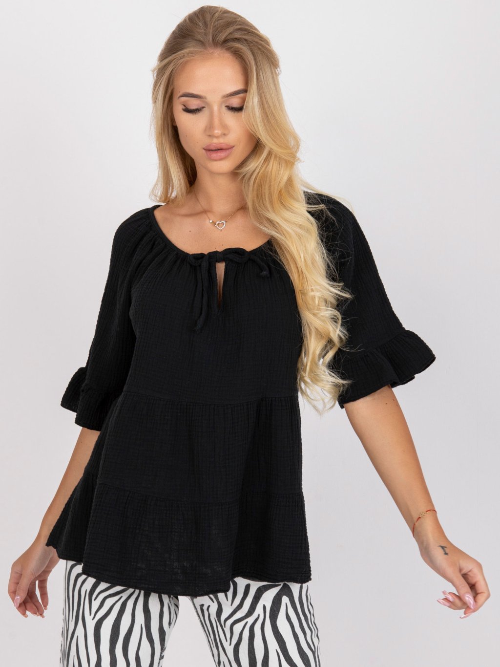 Čierne dámske voľné tričko s riasením