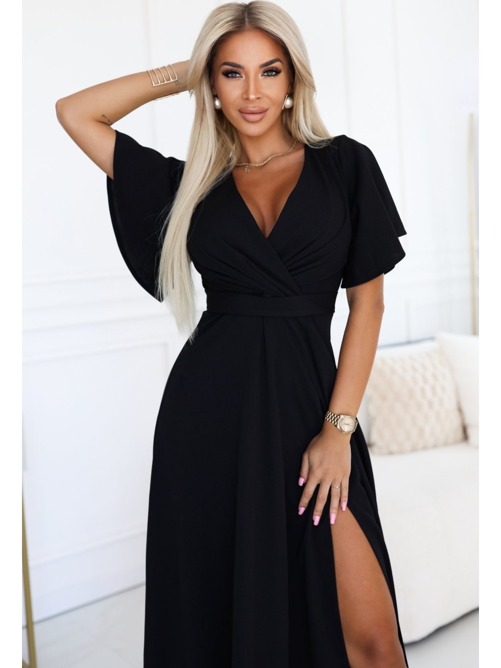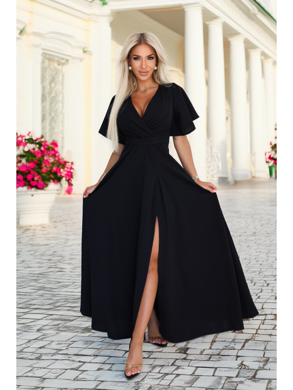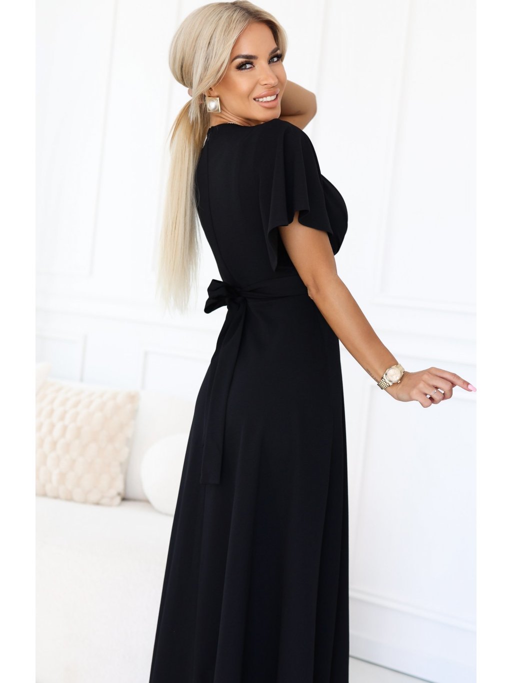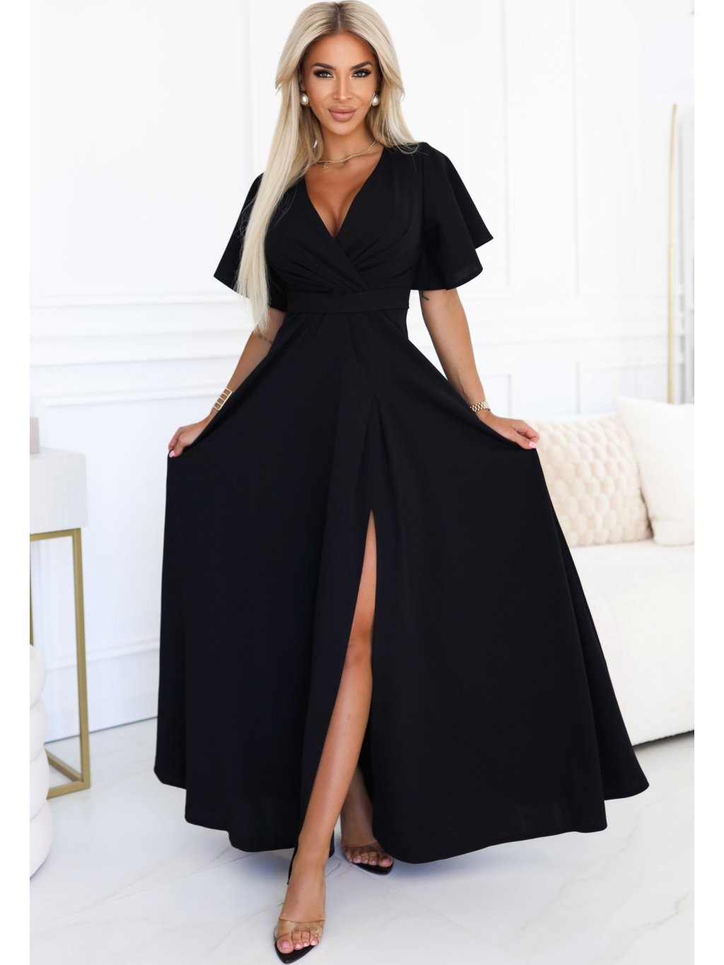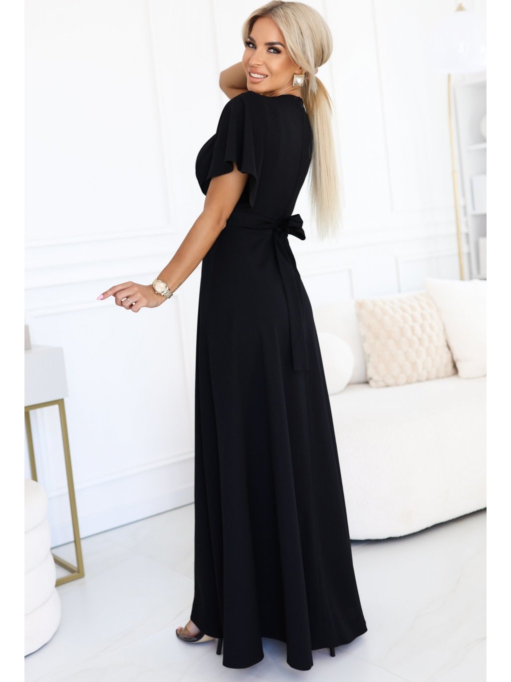 Čierne dlhé šaty s výstrihom JENNIFER