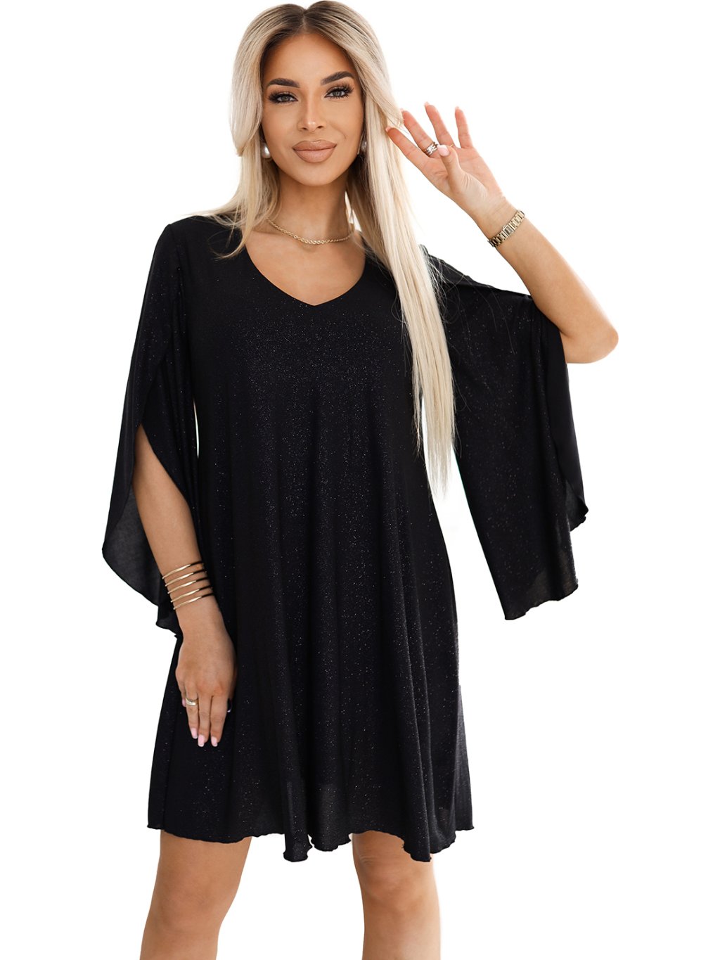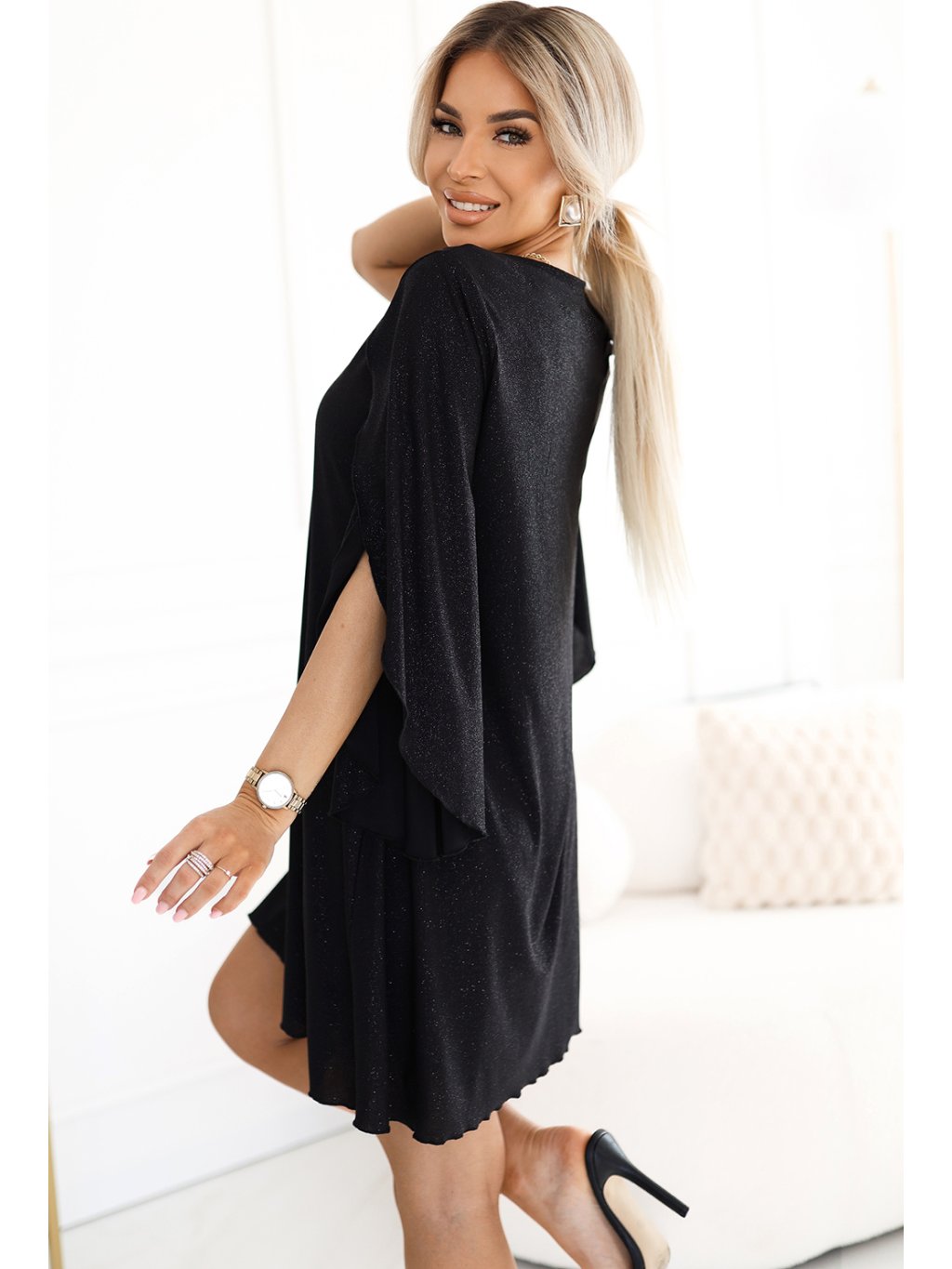 Čierne elegantné šaty s trblietkami a motýlími rukávmi LIVIA