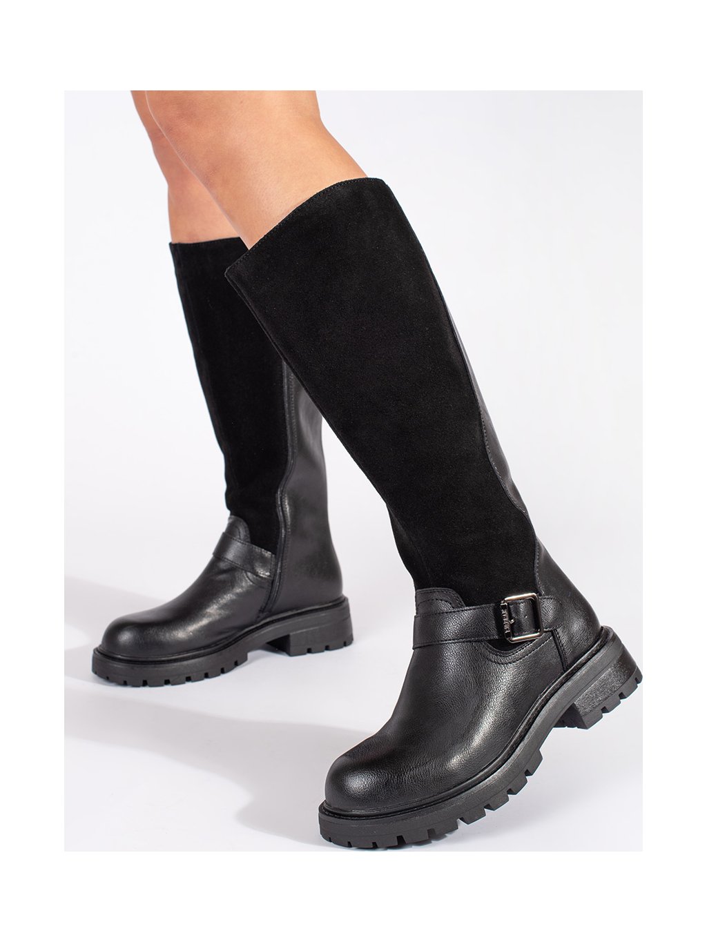 Čierne kožené dámske čižmy na platforme Sergio Leone, podpätok 4 cm