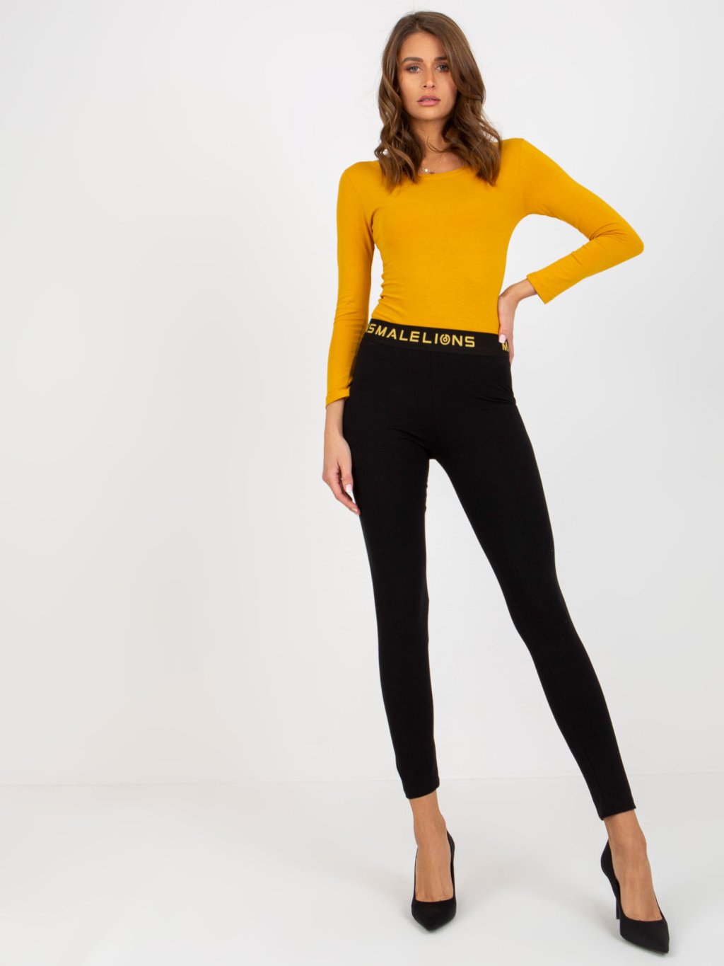 Čierne legíny s nápisom v páse