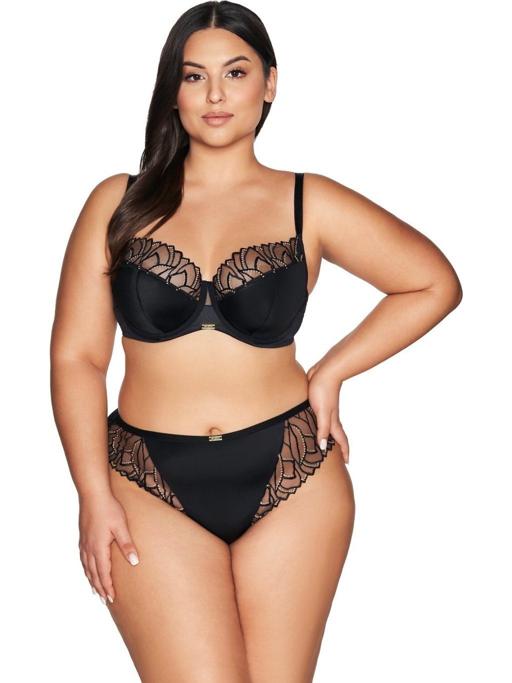 Čierne nohavičky Ava 2114 s čipkovými vsadkami