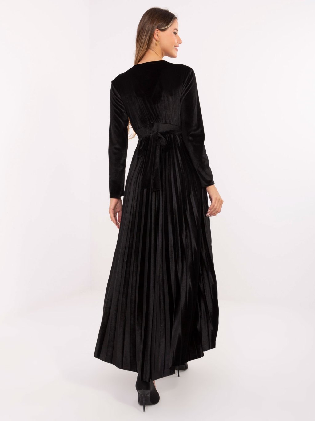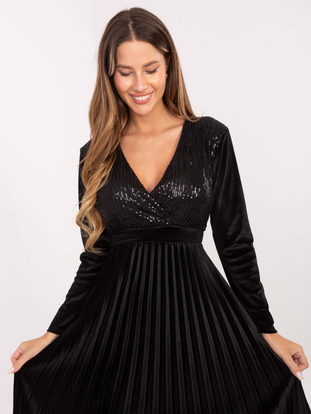 Čierne plisované maxi šaty s flitrami