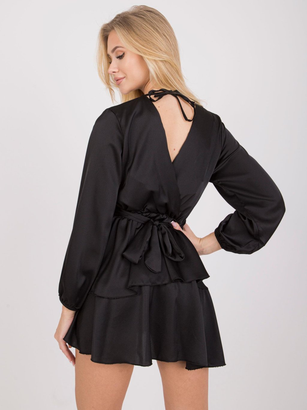 Čierne šaty Rimini s dlhým rukávom a volánmi