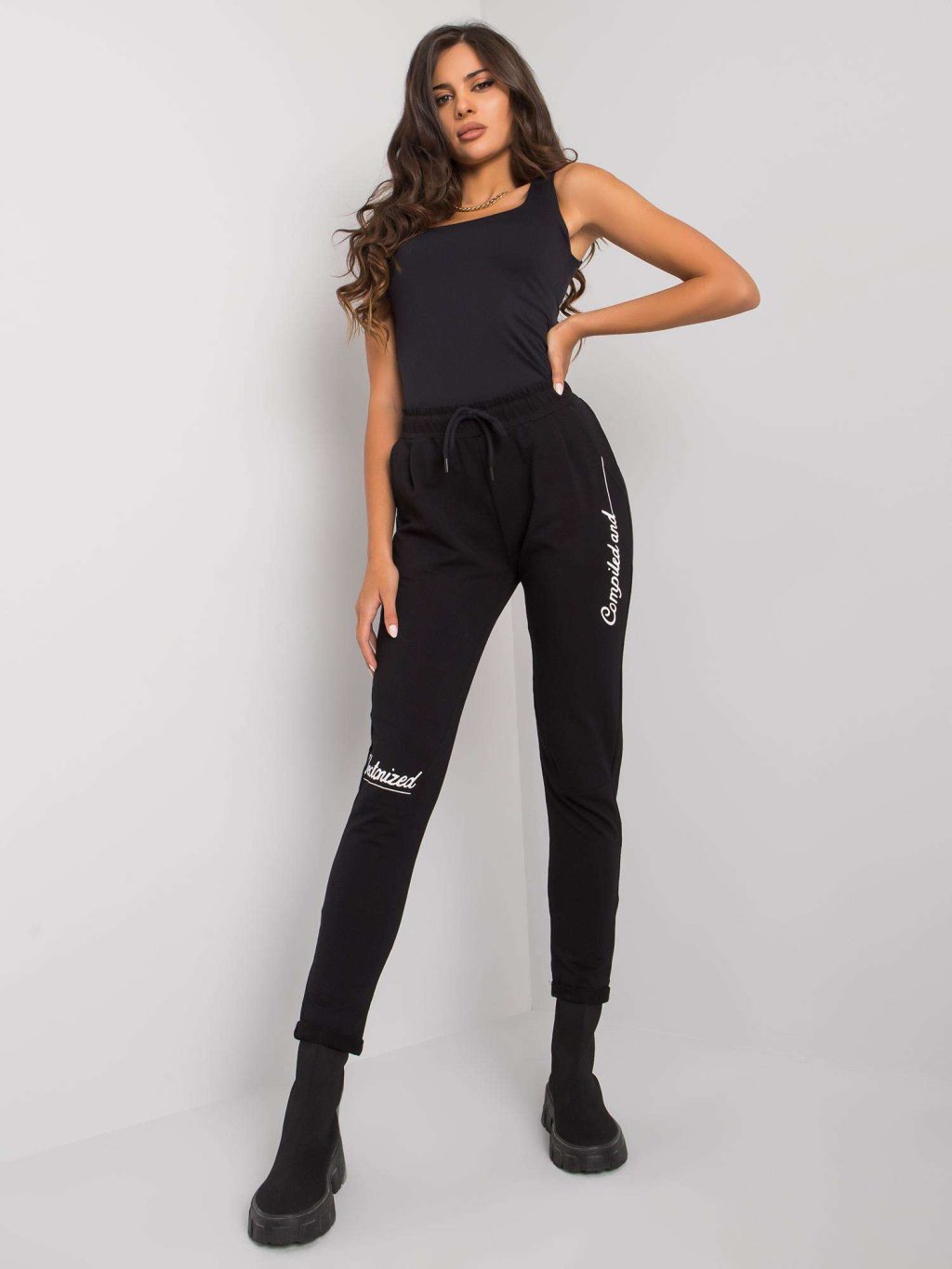 Čierne tepláky s nápismi Haylee