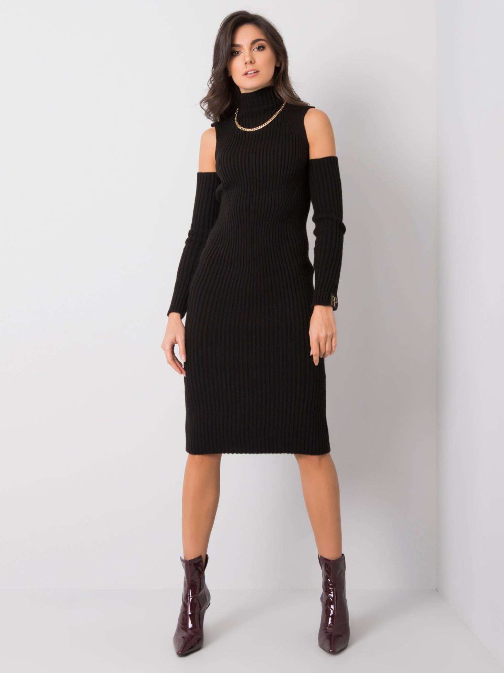 Čierne uplé šaty s prestrihmi