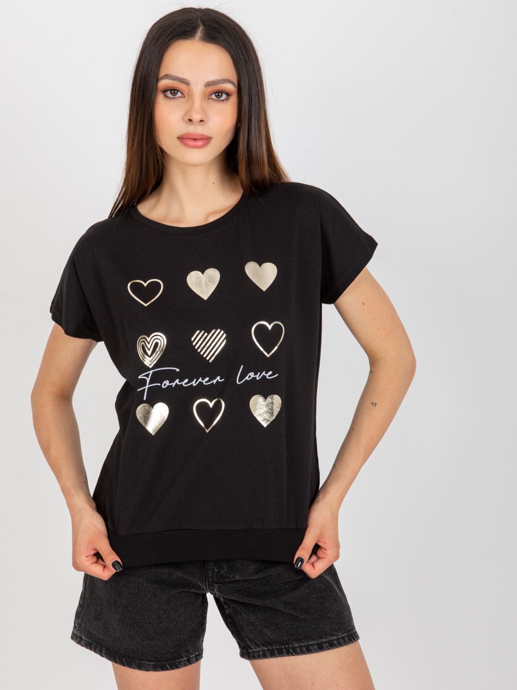 Čierne tričko so zlatými srdiečkami