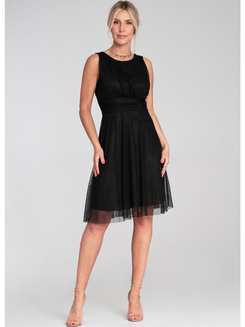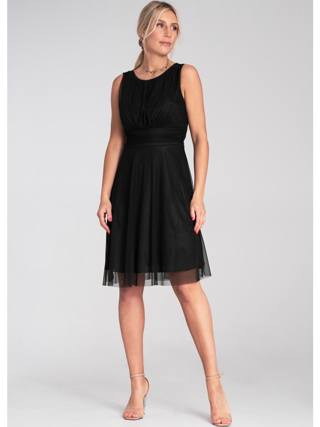 Čierne tylové mini šaty bez rukávov