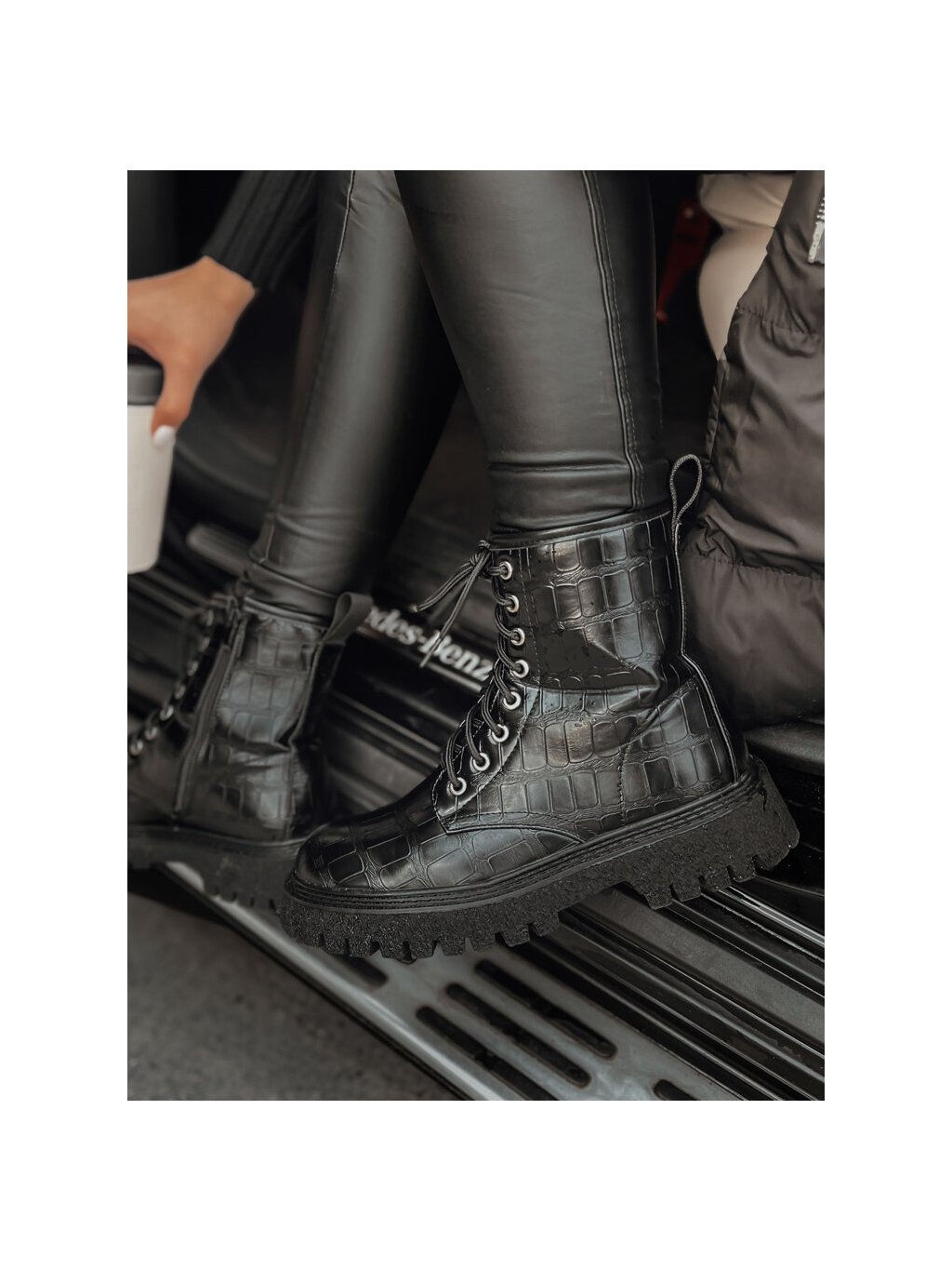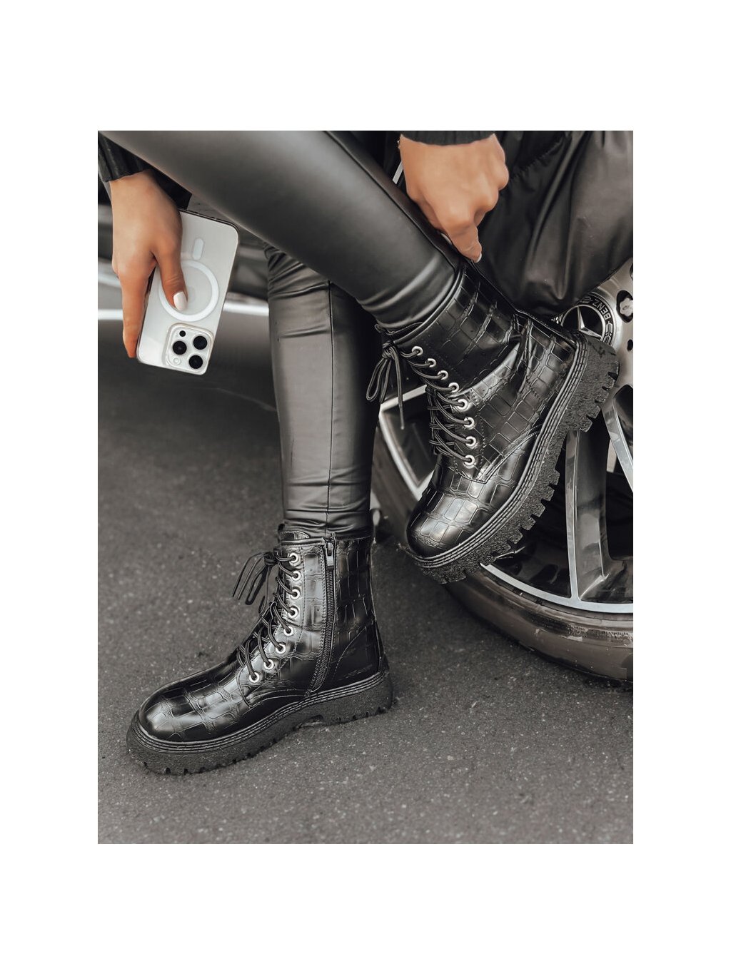 Čierne workery s imitáciou krokodílej kože TENTIS