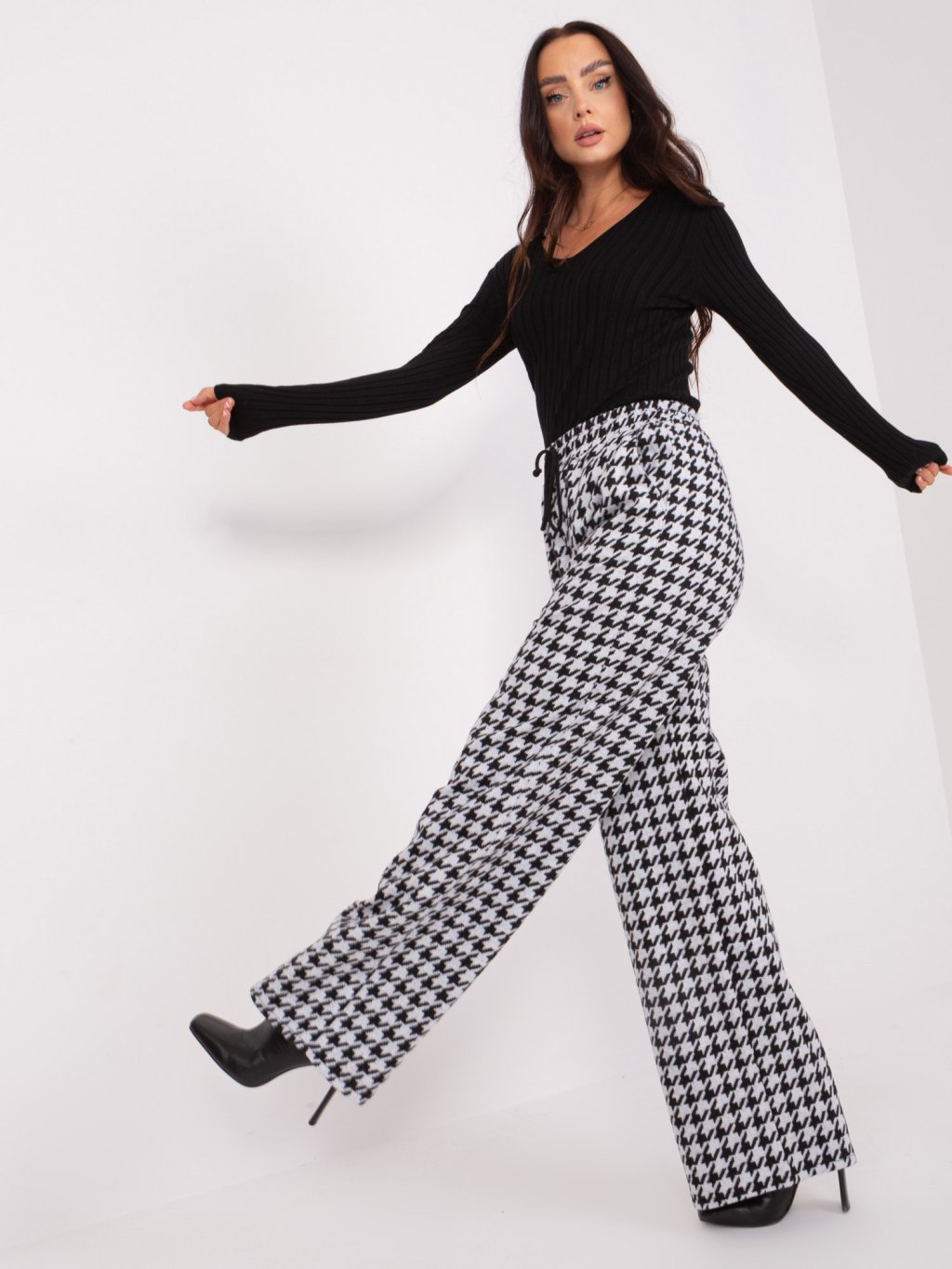 Čierno-biele vzorované široké nohavice