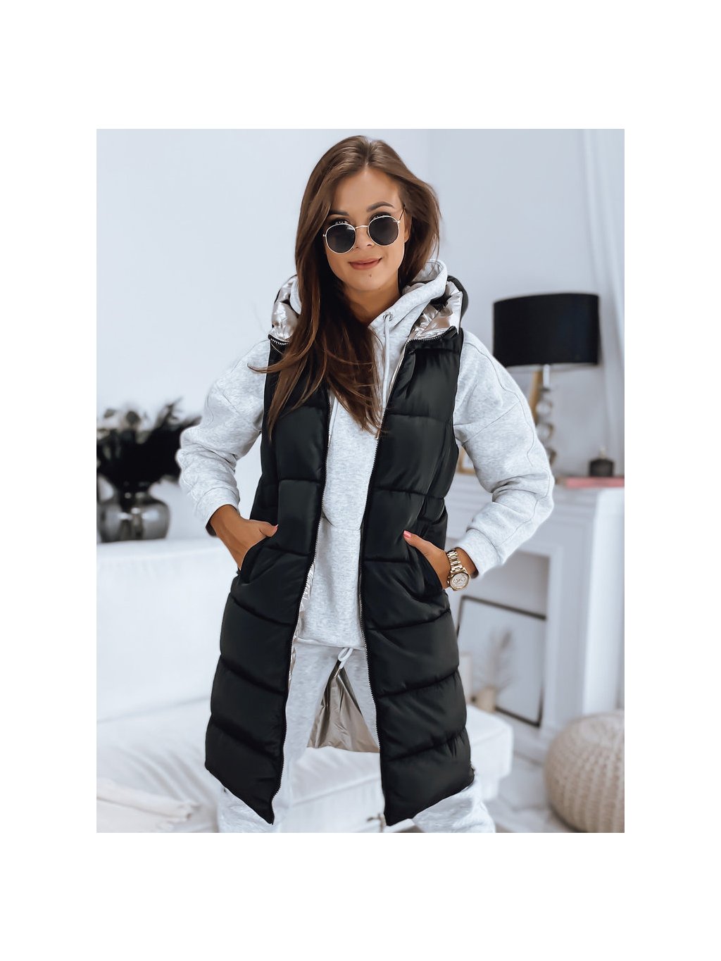 Čierno-perleťová obojstranná vesta MARIET