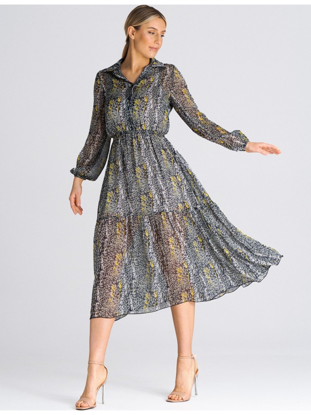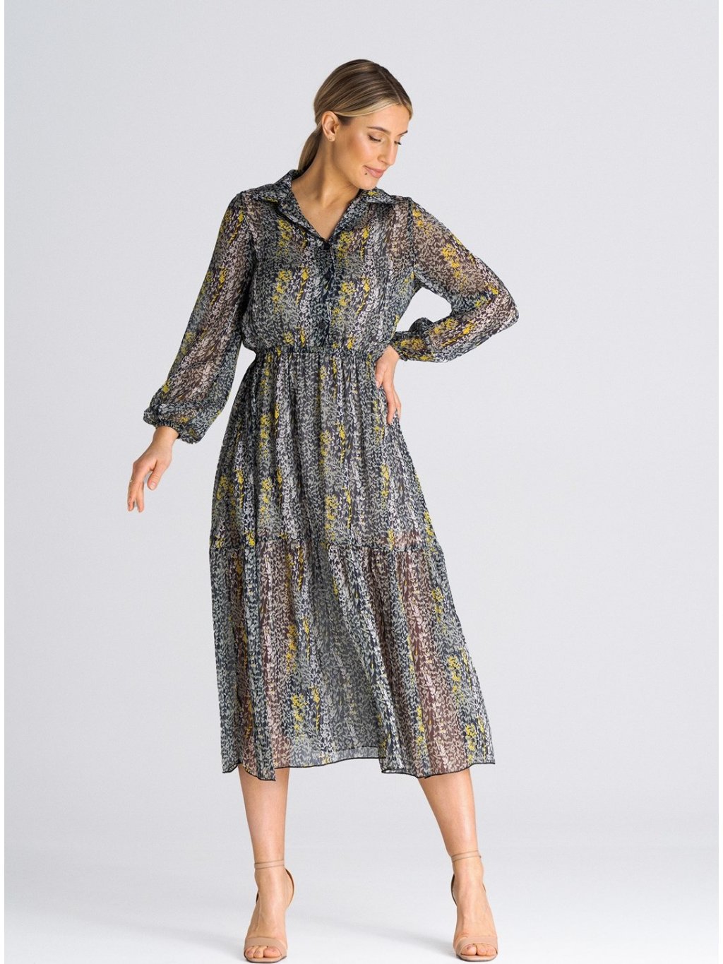 Čierno-sivé vzorované midi šaty