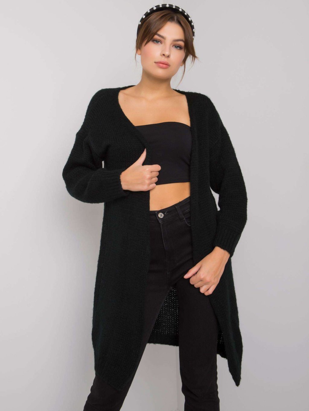 Čierny dlhý kardigán