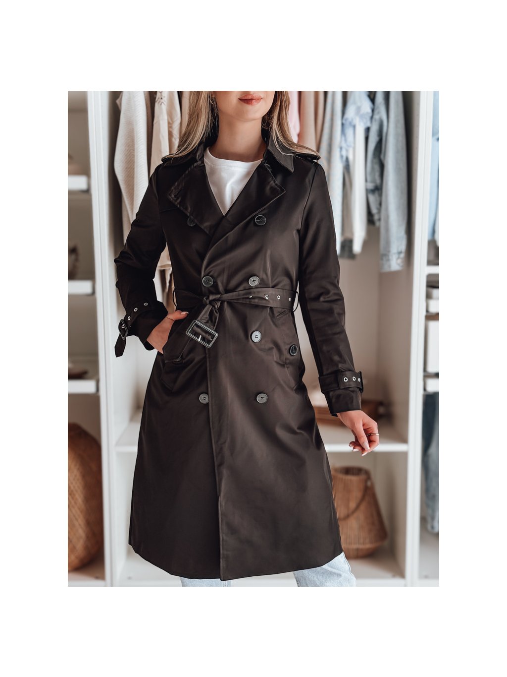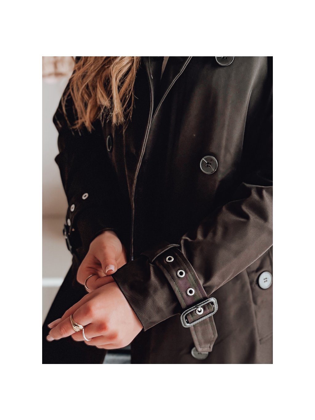 Čierny dlhý trenčkot s pásikom SLIMFOTA